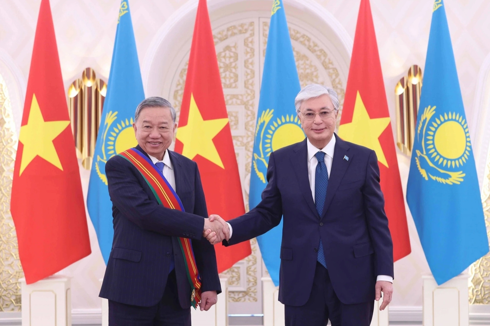 Tinh thần này là “sợi chỉ đỏ” xuyên suốt trong cuộc tiếp xúc giữa Tổng Bí thư Tô Lâm và Tổng thống Kazakhstan Kassym - Jomart Tokayev, Tổng thống Azerbaijan Ilham Aliyev, Tổng thống Nga Vladimir Putin, Tổng thống Belarus Aleksandr Lukashenko.