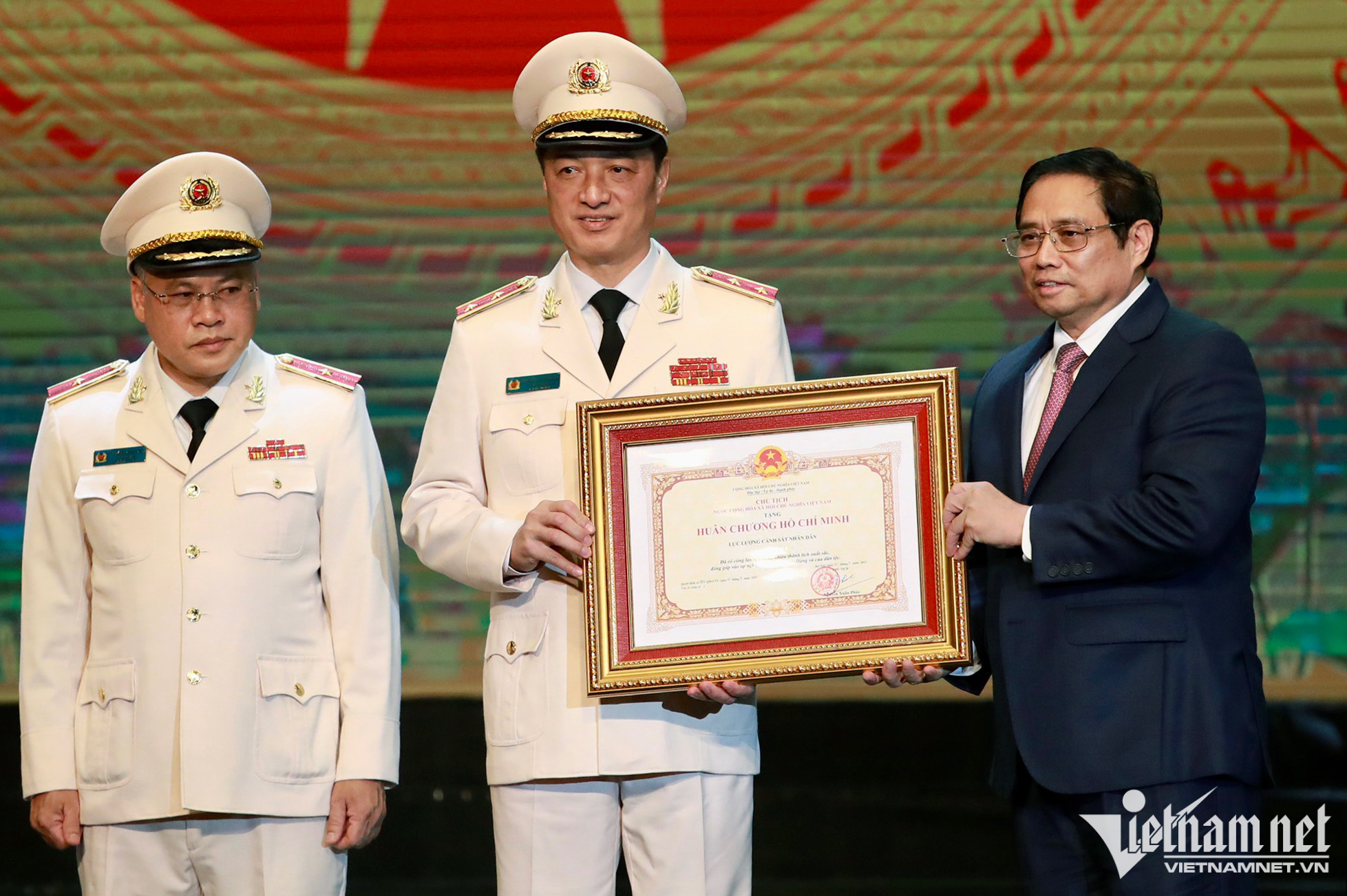 Thủ tướng Phạm Minh Chính, Bộ trưởng Bộ Công an Tô Lâm và Chánh án Tòa án nhân dân tối cao Nguyễn Hòa Bình cùng nhiều lãnh đạo cấp cao tới Trung tâm Hội nghị Quốc gia (Hà Nội) dự Lễ kỷ niệm 60 năm Ngày truyền thống lực lượng Cảnh sát nhân dân, tối 17/7.Thiếu tướng Nguyễn Văn Long, Thứ trưởng Bộ Công an công bố Thư chúc mừng của Tổng Bí thư Nguyễn Phú Trọng tại buổi lễ. Trong thư, Tổng Bí thư gửi lời thăm hỏi ân cần, sâu sắc nhất tới thân nhân các gia đình liệt sỹ, các đồng chí thương binh, bệnh binh, những người có công với cách mạng của lực lượng CSND; nhiệt liệt chúc mừng và biểu dương những thành tích, đóng góp to lớn mà lực lượng CSND đã đạt được trong suốt 60 năm qua.Trung tướng Nguyễn Duy Ngọc, Thứ trưởng Bộ Công an, Trưởng Ban Chỉ đạo các hoạt động kỷ niệm 60 năm Ngày truyền thống lực lượng CSND trình bày diễn văn kỷ niệm. Diễn văn đã ôn lại quá trình ra đời, phát triển và trưởng thành của lực lượng CSND qua các thời kỳ. Đặc biệt, ngày 20/7/1962, Chủ tịch Hồ Chí Minh đã ký Sắc lệnh số 34 công bố các Pháp lệnh quy định nhiệm vụ, quyền hạn và chế độ cấp bậc hàm sỹ quan, hạ sỹ quan của CSND. Đây là mốc son lịch sử của lực lượng CSND, và cũng từ đó, ngày 20/7 hàng năm trở thành ngày truyền thống của toàn lực lượng.Thủ tướng Phạm Minh Chính trao tặng Huân chương Hồ Chí Minh cho lực lượng Cảnh sát nhân dân. Ngoài ra, còn có lễ trao tặng danh hiệu Anh hùng lực lượng vũ trang nhân dân, trao tặng Huân chương cho các lãnh đạo Bộ và các tập thể... Phát biểu tại buổi lễ, thay mặt lãnh đạo Đảng, Nhà nước, Thủ tướng Phạm Minh Chính biểu dương, chúc mừng lực lượng CSND được đón nhận Huân chương Hồ Chí Minh nhân dịp Kỷ niệm 60 năm ngày truyền thống. "Với tất cả niềm tự hào, chúng ta có thể khẳng định, lực lượng CSND Việt Nam thực sự xứng đáng là đội quân anh hùng của Nhân dân Việt Nam anh hùng, của dân tộc Việt Nam anh hùng", Thủ tướng nhấn mạnh.