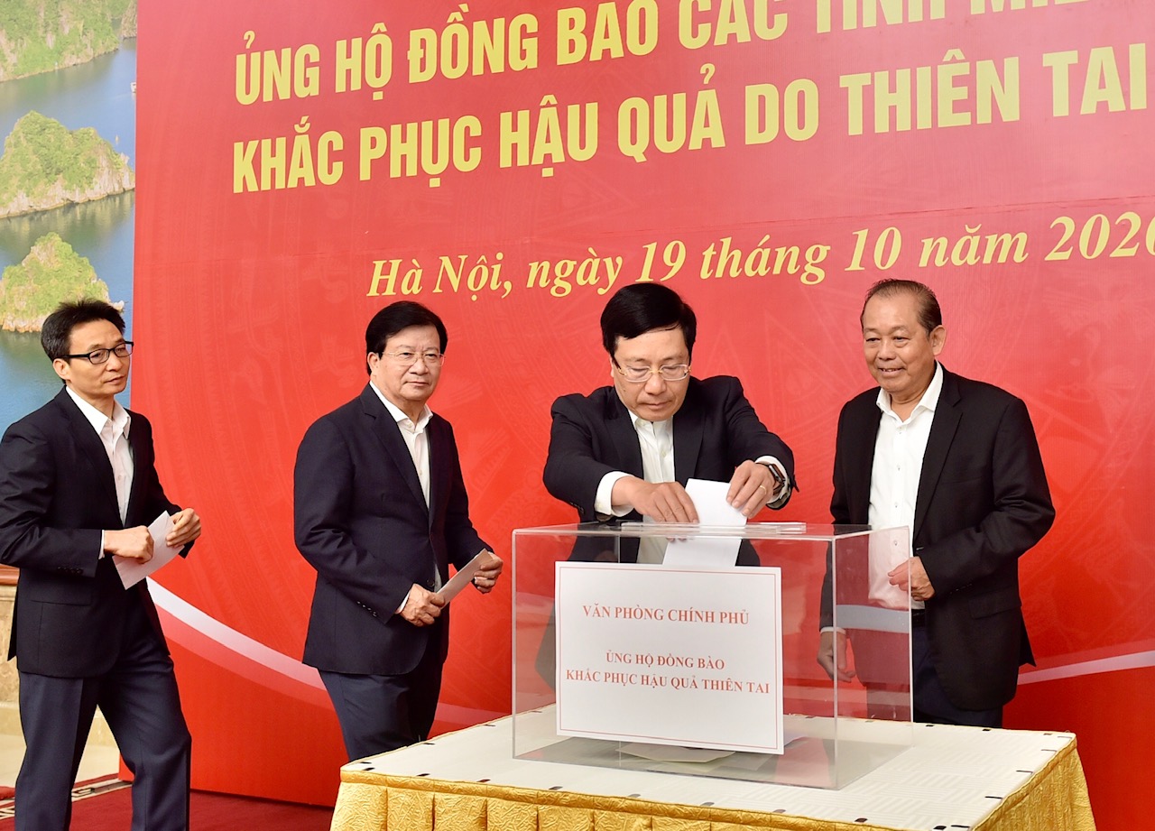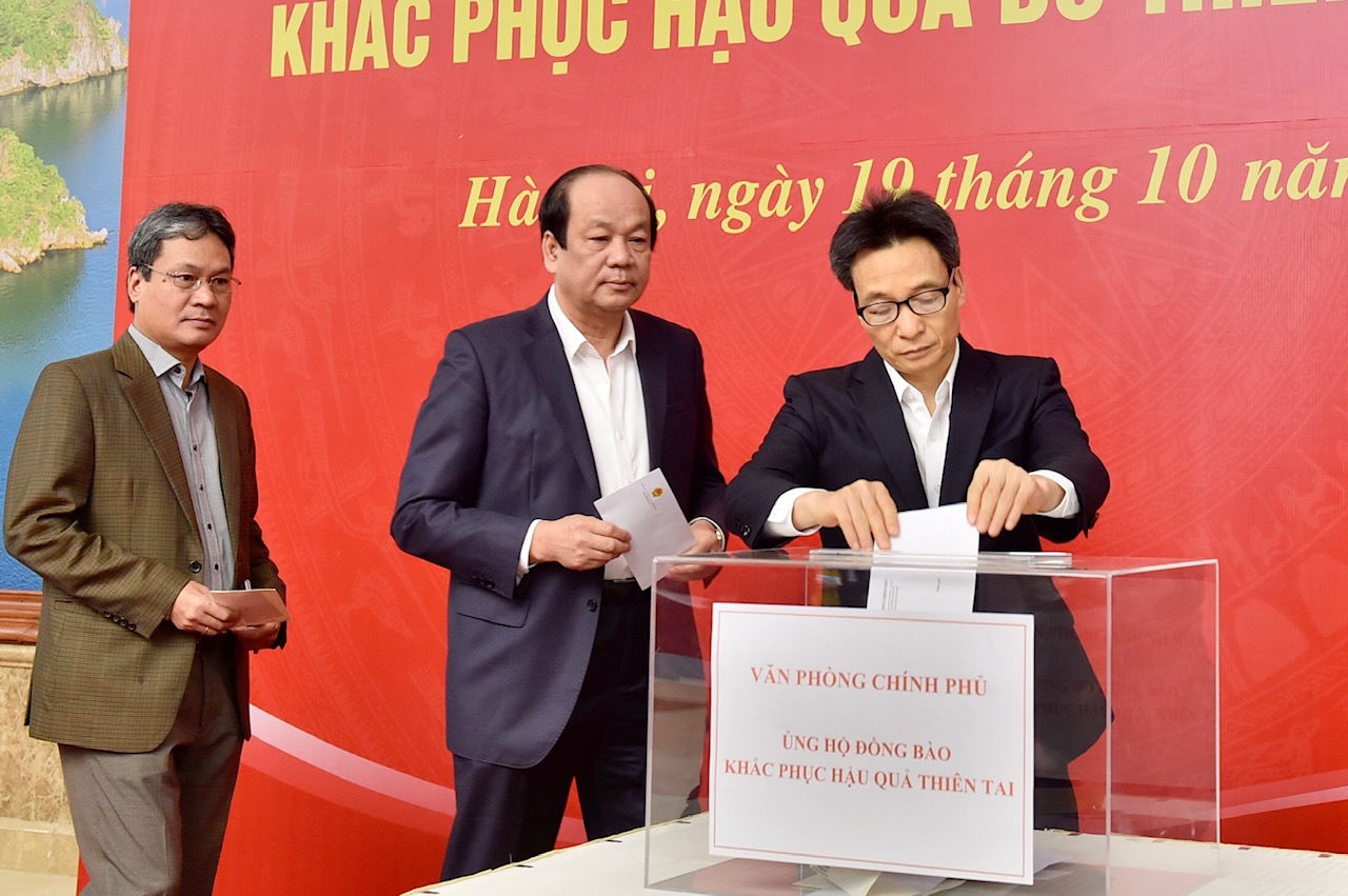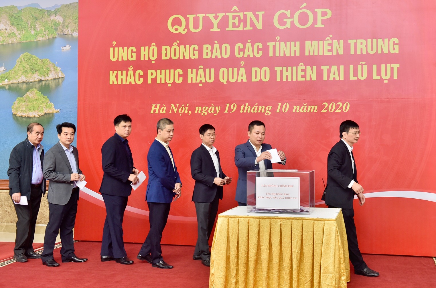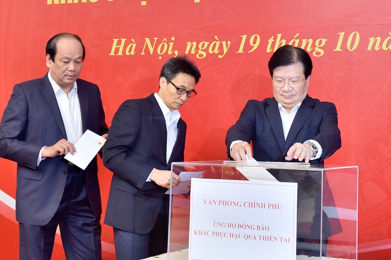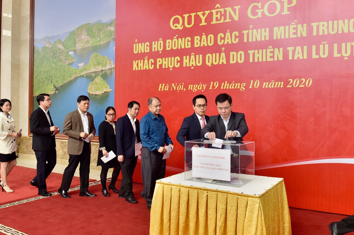 Lãnh đạo Chính phủ quyên góp ủng hộ đồng bào các tỉnh miền Trung. Ảnh: Nhật Bắc |