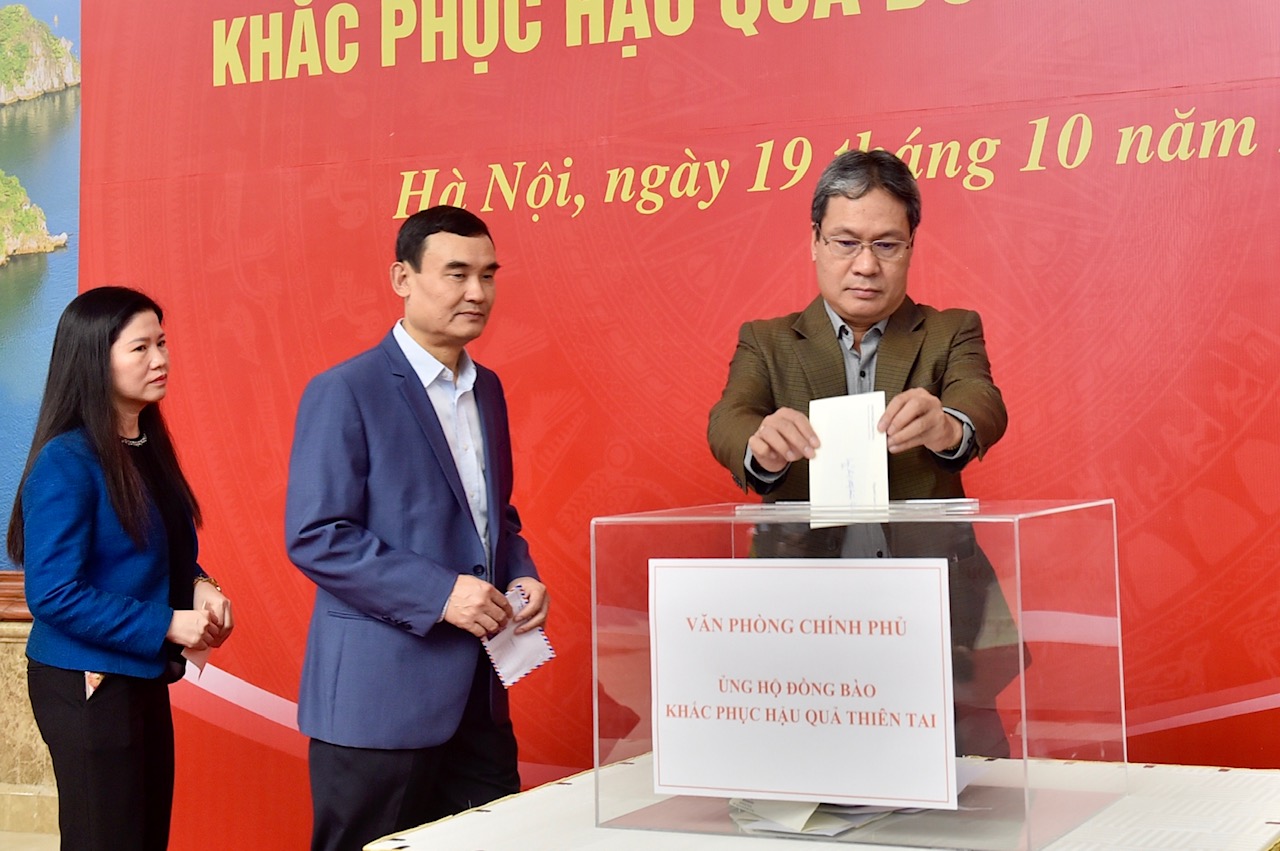 "Phát huy truyền thống tương thân, tương ái, “lá lành đùm lá rách” của dân tộc, tôi đề nghị cán bộ, công chức, viên chức, người lao động Văn phòng Chính phủ với tình cảm và trách nhiệm của mình tích cực quyên góp ủng hộ, hỗ trợ đồng bào các tỉnh miền Trung khắc phục hậu quả mưa lũ sớm phục hồi sản xuất và ổn định đời sống”, Bộ trưởng, Chủ nhiệm VPCP Mai Tiến Dũng nhấn mạnh.
