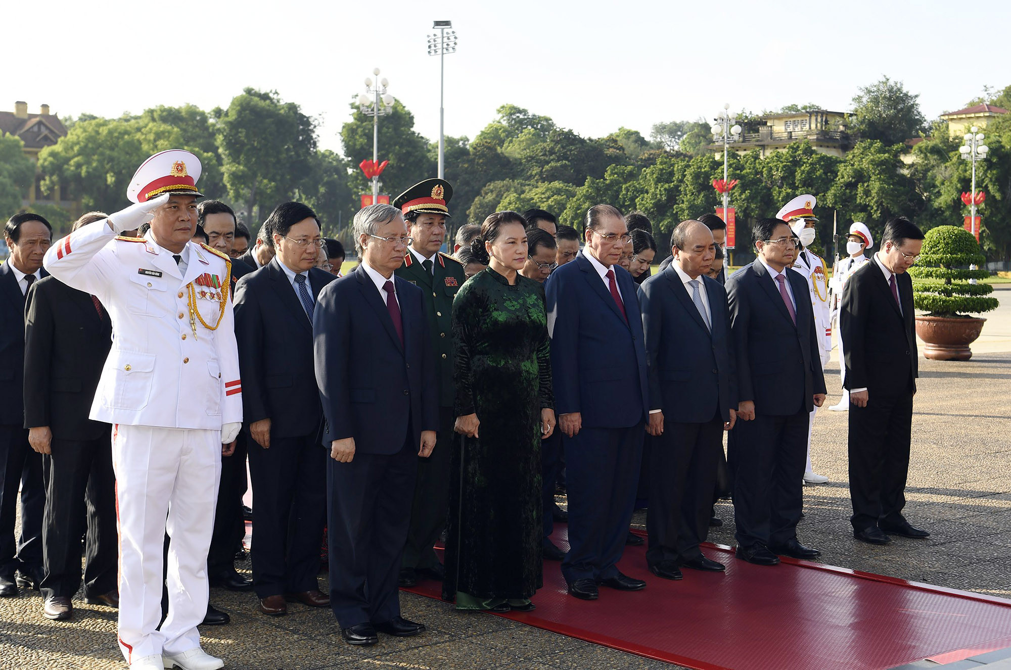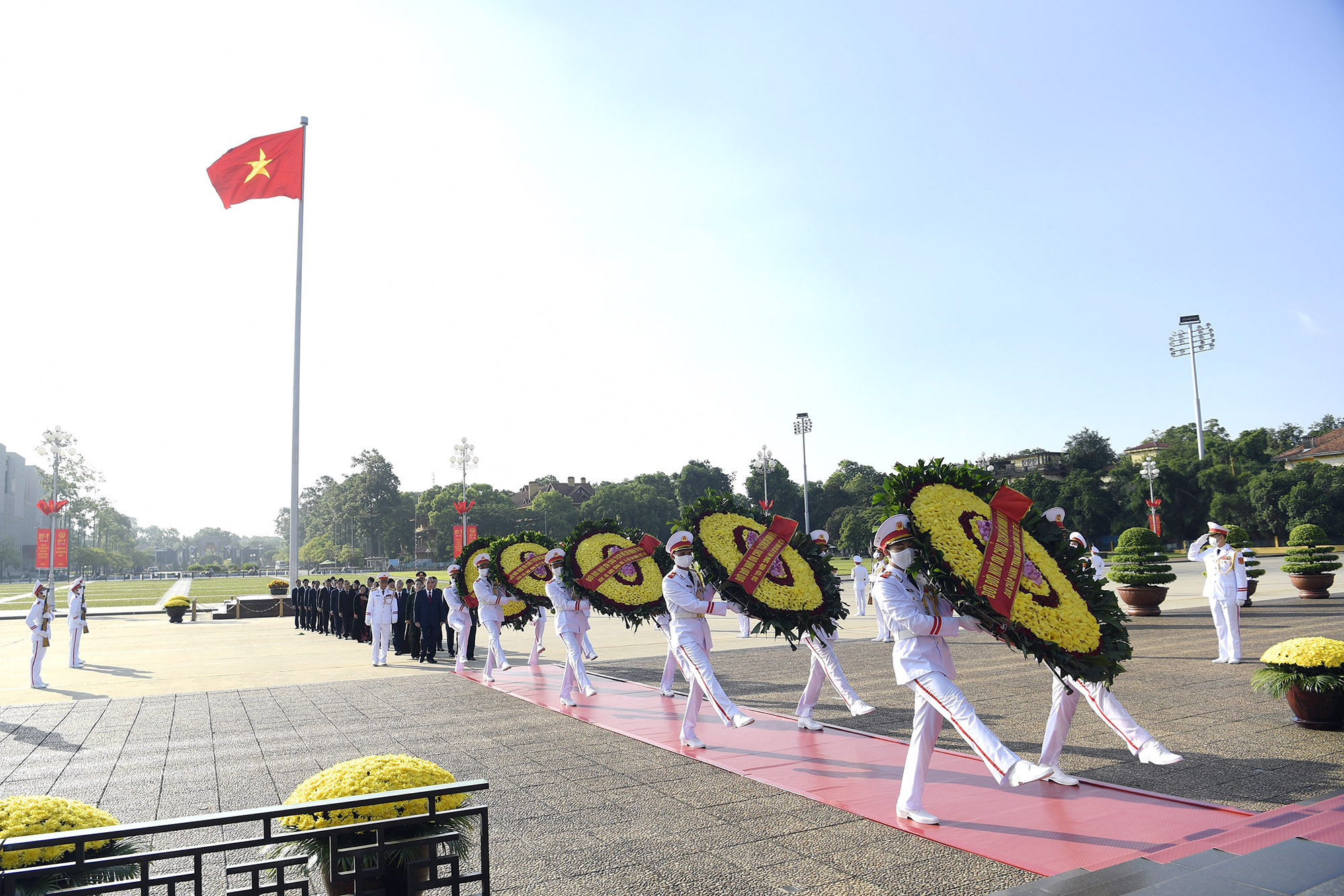 Sáng 26/7, các lãnh đạo Đảng, Nhà nước, MTTQ Việt Nam đã tới đặt vòng hoa, dâng hương, tưởng niệm các Anh hùng liệt sĩ tại Đài Tưởng niệm các Anh hùng liệt sĩ trên đường Bắc Sơn, bày tỏ lòng tưởng nhớ những người con ưu tú của dân tộc đã không tiếc máu xương, dũng cảm chiến đấu, hy sinh vì sự nghiệp đấu tranh giải phóng dân tộc, thống nhất đất nước.Đoàn lãnh đạo Đảng và Nhà nước có Chủ tịch nước Nguyễn Xuân Phúc, Thủ tướng Phạm Minh Chính, nguyên Tổng Bí thư Nông Đức Mạnh, nguyên Chủ tịch Quốc hội Nguyễn Thị Kim Ngân; các Ủy viên Bộ Chính trị, Bí thư Trung ương Đảng; các nguyên Ủy viên Bộ Chính trị, nguyên Bí thư Trung ương Đảng…Đoàn đại biểu Quân ủy Trung ương, Bộ Quốc phòng do Đại tướng Phan Văn Giang, Bộ trưởng Quốc phòng dẫn đầu làm trưởng đoàn đặt vòng hoa tưởng niệm các Anh hùng liệt sĩ.Đoàn đại biểu Đảng ủy Công an Trung ương, Bộ Công an đặt vòng hoa tưởng niệm các Anh hùng liệt sĩ.Vòng hoa của đoàn mang dòng chữ "Đời đời nhớ ơn các Anh hùng liệt sĩ ".Đoàn đại biểu Bộ LĐTB&XH tưởng niệm các Anh hùng liệt sĩ.Đoàn đại biểu Thành ủy, HĐND, UBND, MTTQ Việt Nam TP Hà Nội tưởng niệm các Anh hùng liệt sĩ.Tiếp đó, các lãnh đạo Đảng, Nhà nước, MTTQ Việt Nam tới đặt vòng hoa, vào viếng Lăng Chủ tịch Hồ Chí Minh; thành kính bày tỏ lòng biết ơn vô hạn với công lao to lớn của Người đối với sự nghiệp cách mạng vẻ vang của Đảng và dân tộc. Vòng hoa mang dòng chữ "Đời đời nhớ ơn Chủ tịch Hồ Chí Minh vĩ đại". Chủ tịch nước Nguyễn Xuân Phúc, Thủ tướng Phạm Minh Chính, nguyên Tổng Bí thư Nông Đức Mạnh, nguyên Chủ tịch Quốc hội Nguyễn Thị Kim Ngân và nhiều lãnh đạo cấp cao khác viếng Chủ tịch Hồ Chí Minh.Đoàn đại biểu Quân ủy Trung ương, Bộ Quốc phòng đặt vòng hoa, vào viếng Chủ tịch Hồ Chí Minh. Đoàn đại biểu Đảng ủy Công an Trung ương, Bộ Công an vào viếng Chủ tịch Hồ Chí Minh.Đoàn đại biểu Thành ủy, HĐND, UBND, Ủy ban MTTQ Việt Nam TP Hà Nội viếng, tưởng niệm Chủ tịch Hồ Chí Minh.