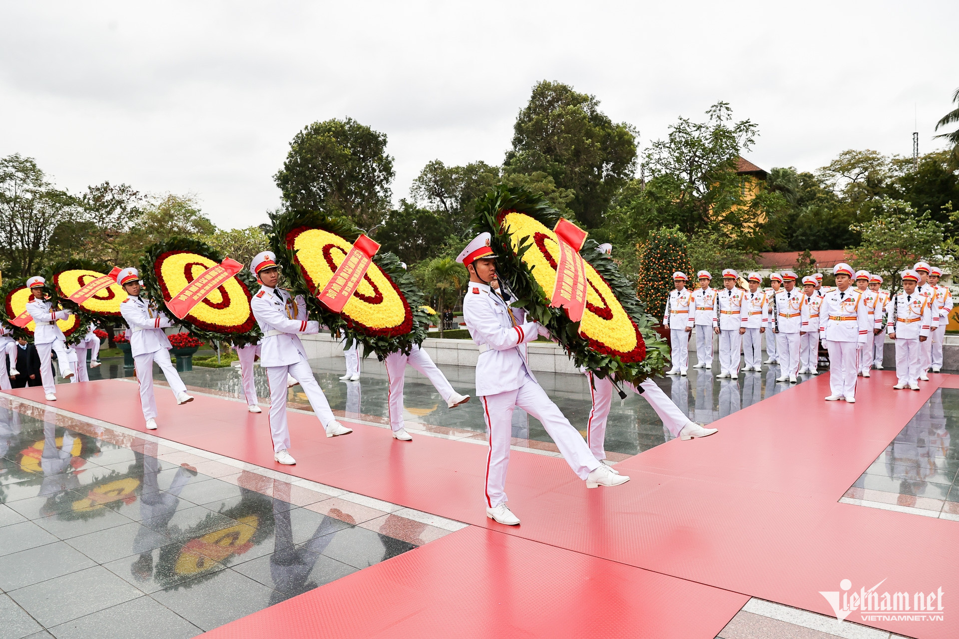 Cũng trong sáng nay, các đoàn: Quân ủy Trung ương - Bộ Quốc phòng; Đảng ủy Công an Trung ương - Bộ Công an; Thành ủy, HĐND, UBND, MTTQ Việt Nam TP Hà Nội... đã đến đặt vòng hoa, vào Lăng viếng Chủ tịch Hồ Chí Minh và đặt vòng hoa tại Đài tưởng niệm các Anh hùng iệt sĩ.