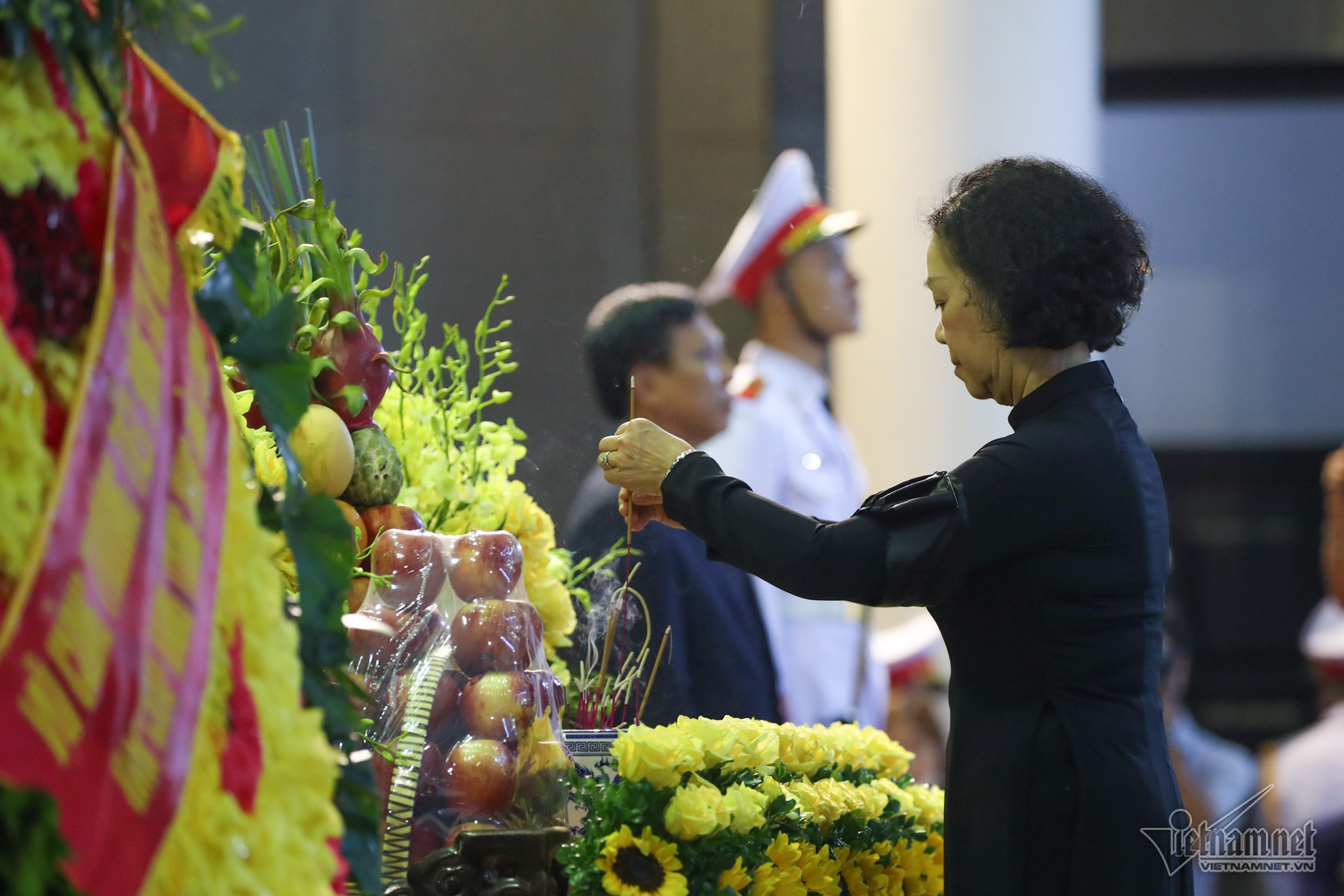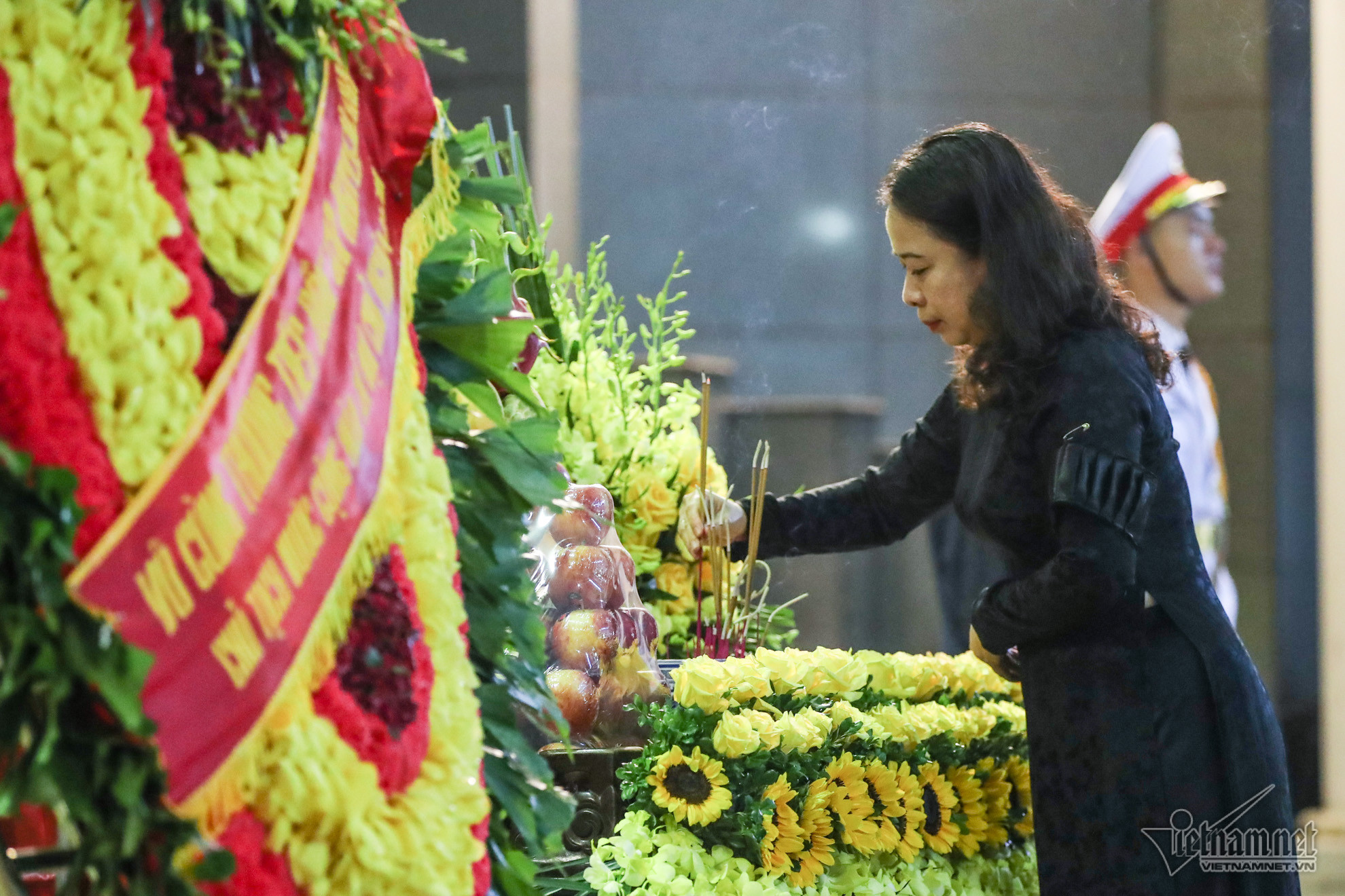 Trong không khí trang nghiêm, xúc động, đoàn Ban Chấp hành Trung ương Đảng do Thường trực Ban Bí thư, Trưởng Ban Tổ chức Trung ương Trương Thị Mai dẫn đầu vào viếng và chia buồn cùng gia quyến.