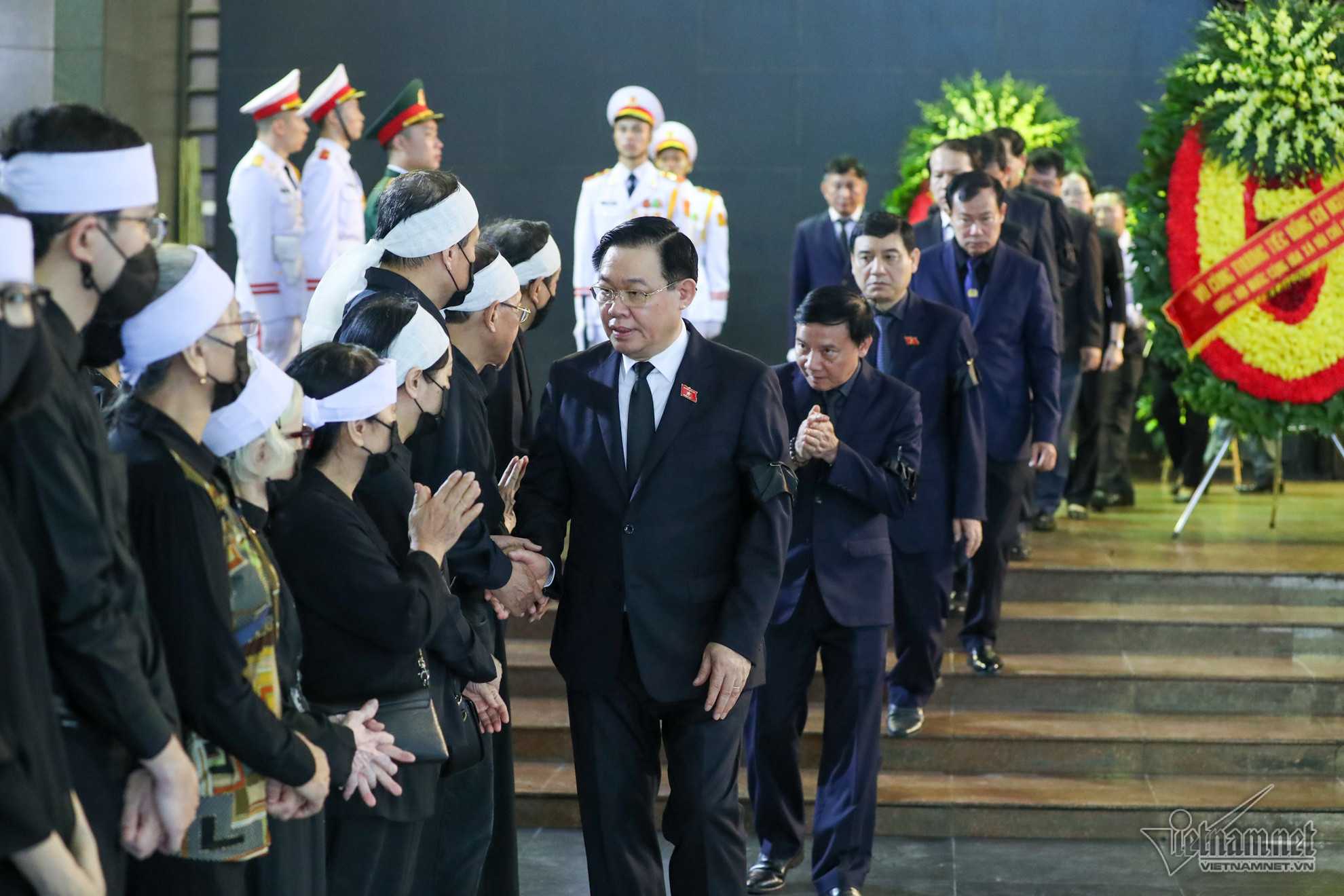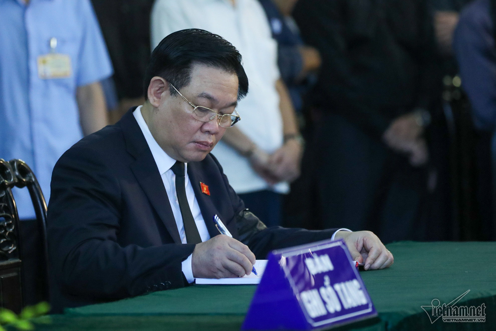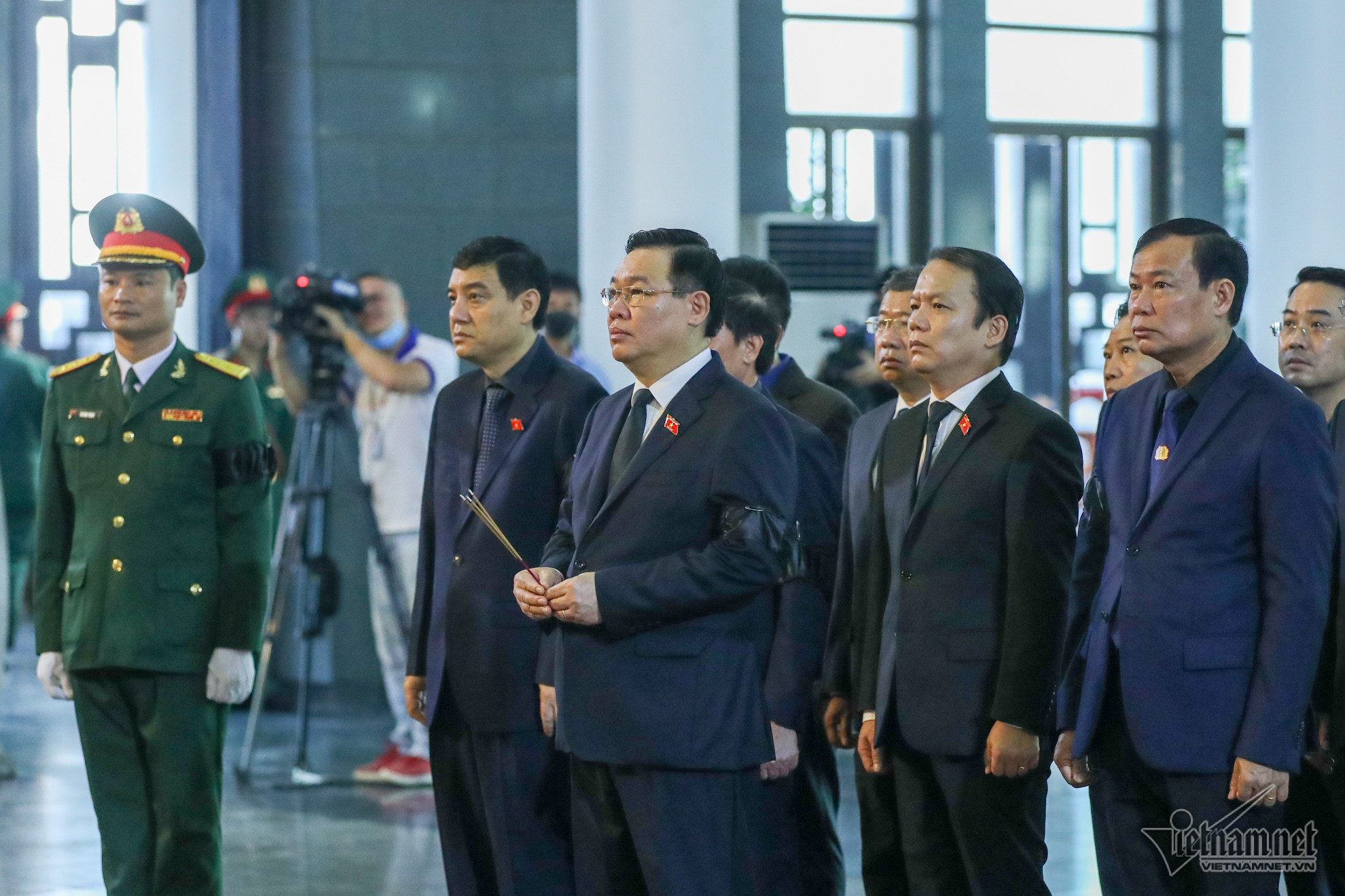 Đoàn Quốc hội do Chủ tịch Quốc hội Vương Đình Huệ dẫn đầu vào viếng, Phó Chủ tịch Quốc hội Nguyễn Khắc Định và các thành viên trong Ủy ban Thường vụ Quốc hội, ĐBQH tham gia đoàn viếng.