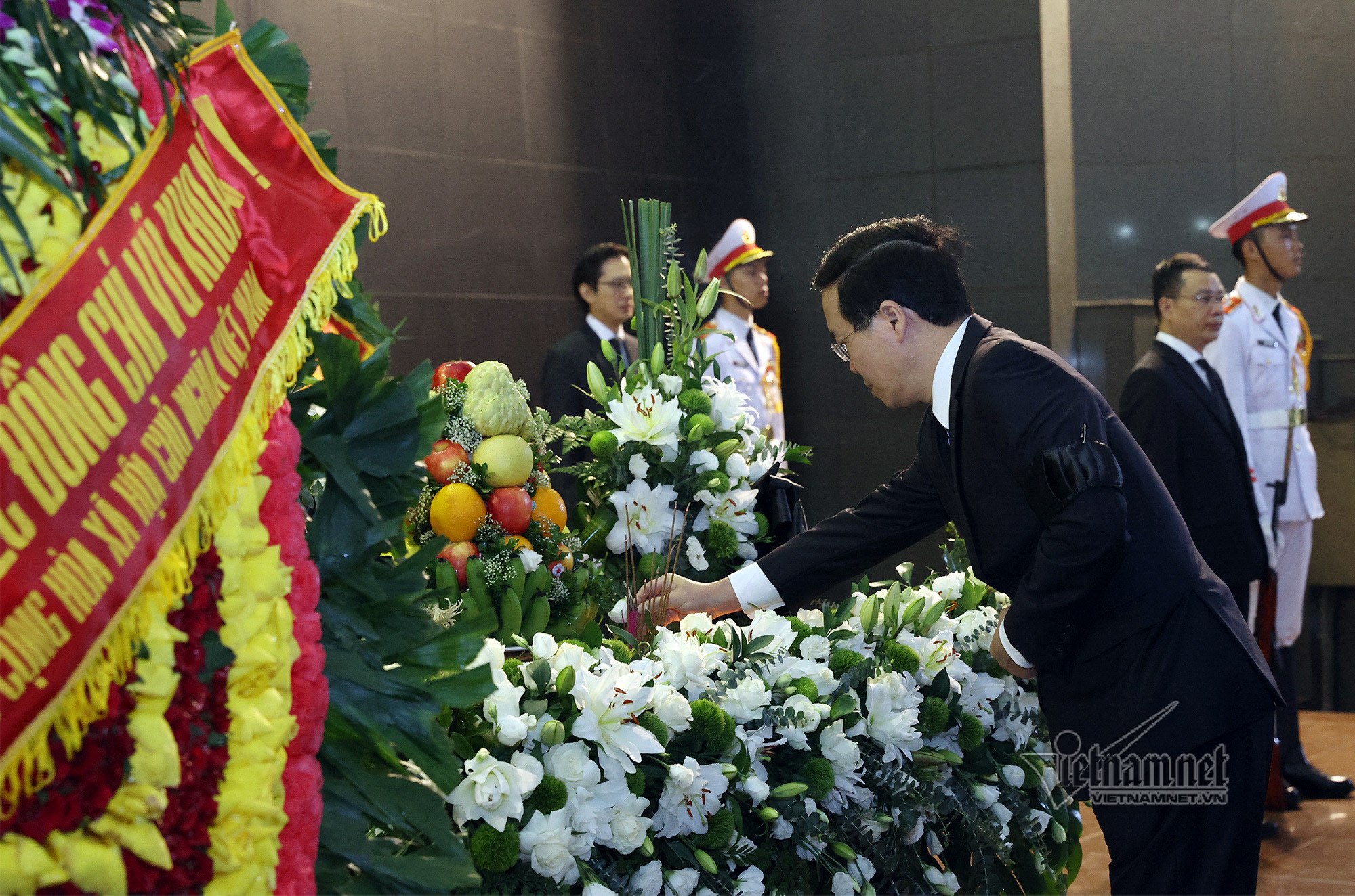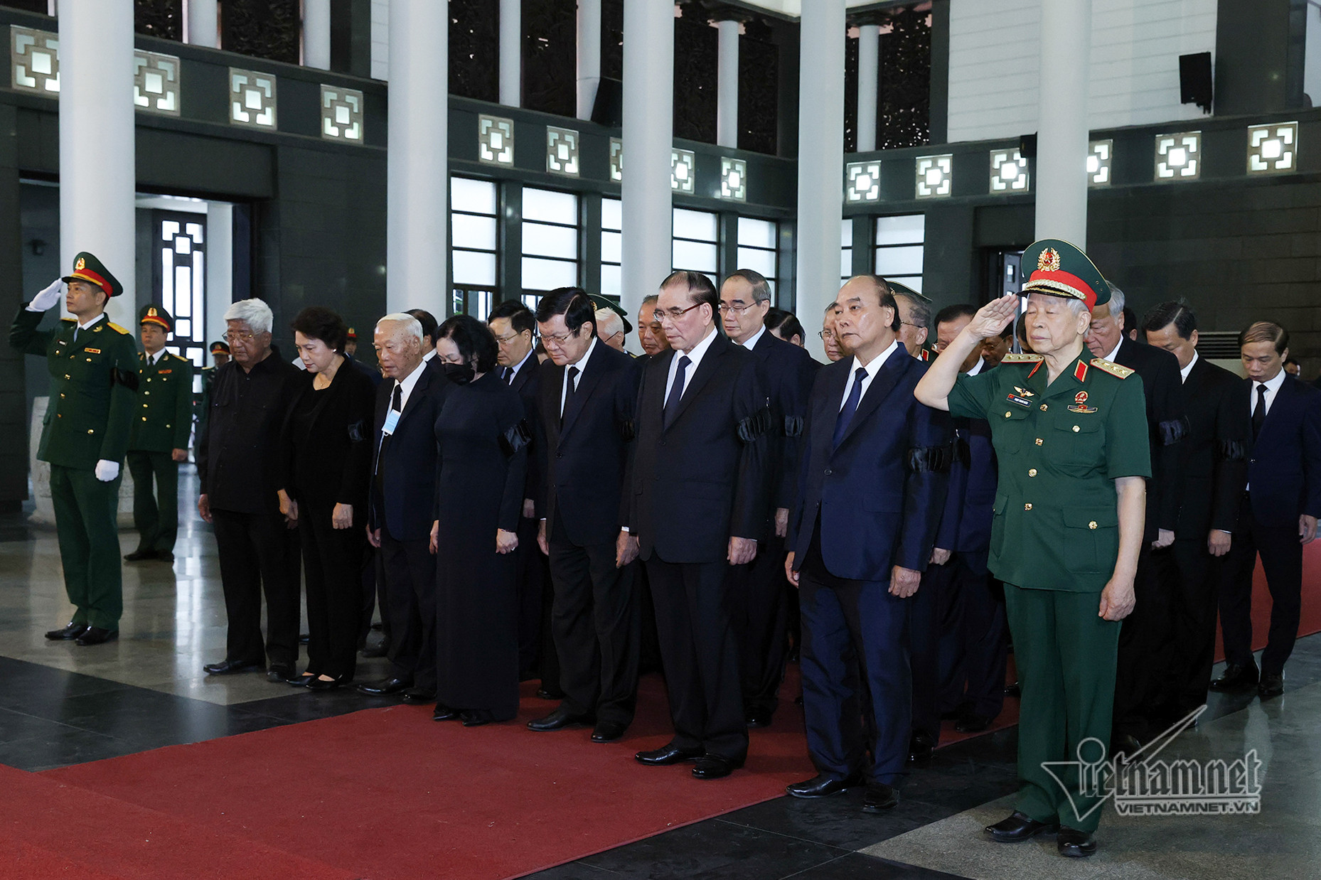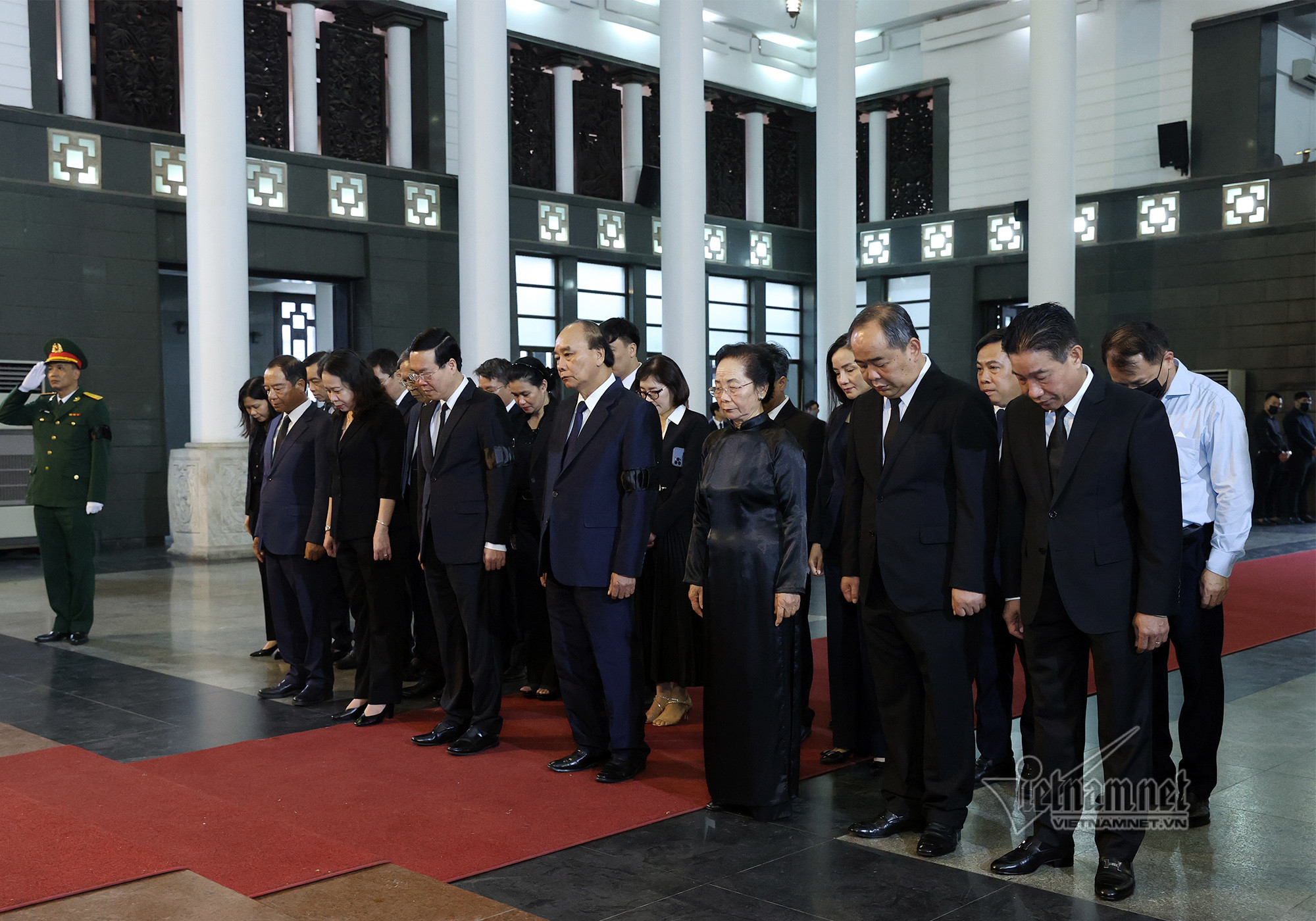 Đoàn Chủ tịch nước do Chủ tịch nước Võ Văn Thưởng dẫn đầu vào viếng. Đoàn có nguyên Chủ tịch nước Nguyễn Xuân Phúc, Phó Chủ tịch nước Võ Thị Ánh Xuân, nguyên Phó Chủ tịch nước Nguyễn Thị Doan.