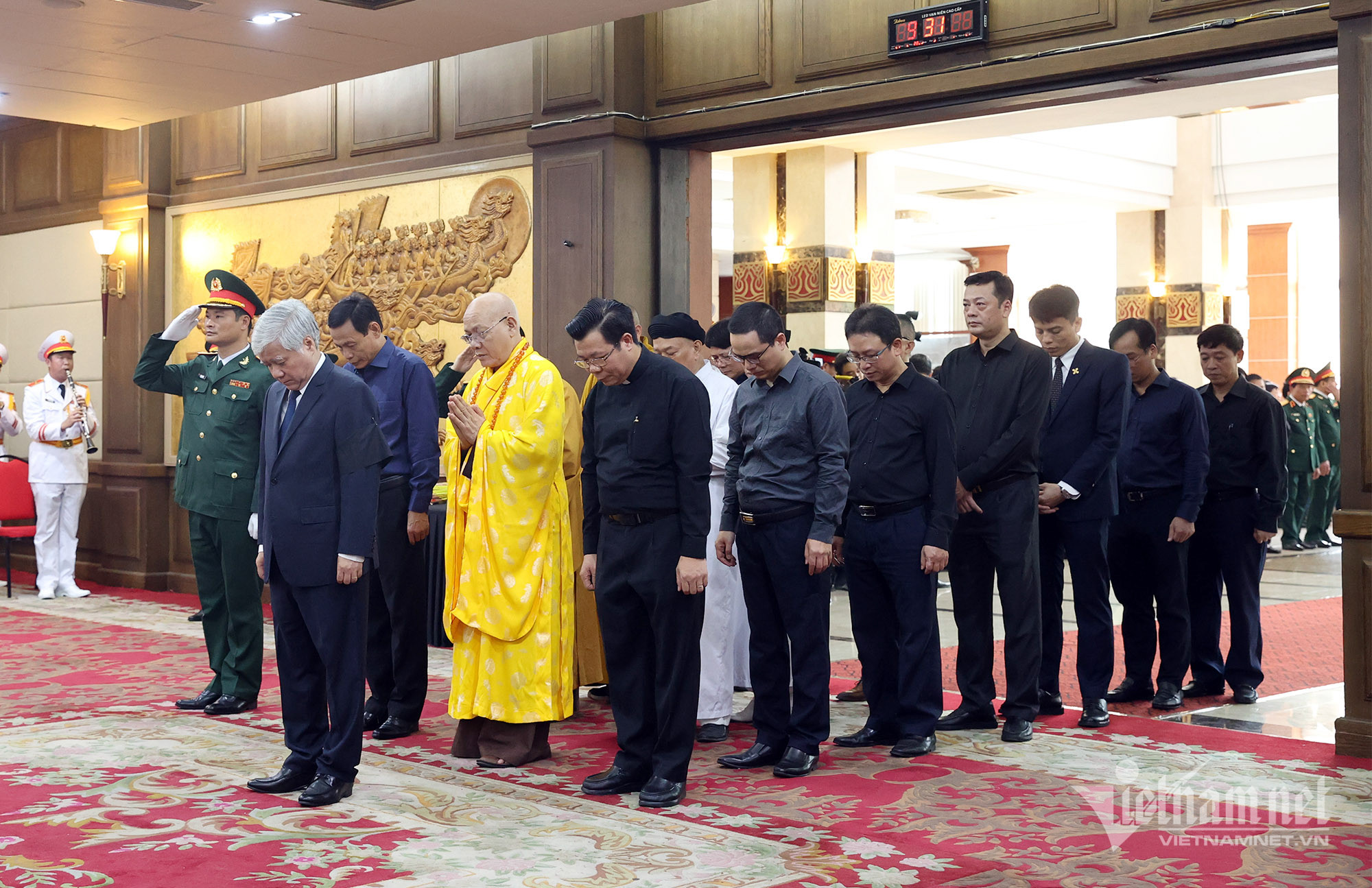 Đúng 9h, lễ viếng chính thức bắt đầu. Đoàn Ban Chấp hành Trung ương Đảng Cộng sản Việt Nam do bà Trương Thị Mai, Uỷ viên Bộ Chính trị, Thường trực Ban Bí thư, Trưởng Ban Tổ chức Trung ương làm Trưởng đoàn vào viếng.