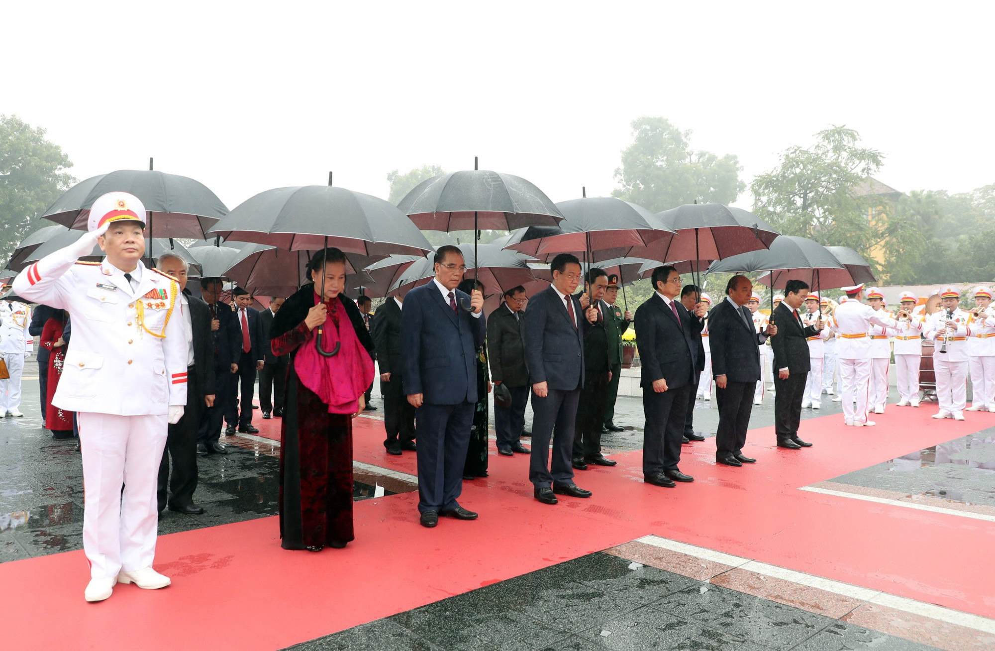 Trước anh linh Chủ tịch Hồ Chí Minh vĩ đại, các nhà lãnh đạo bày tỏ lòng biết ơn vô hạn, lòng thành kính tưởng nhớ công lao to lớn của Chủ tịch Hồ Chí Minh kính yêu - Người sáng lập, lãnh đạo, rèn luyện Đảng Cộng sản Việt Nam, đội tiên phong của giai cấp công nhân, Nhân dân lao động và của dân tộc Việt Nam.