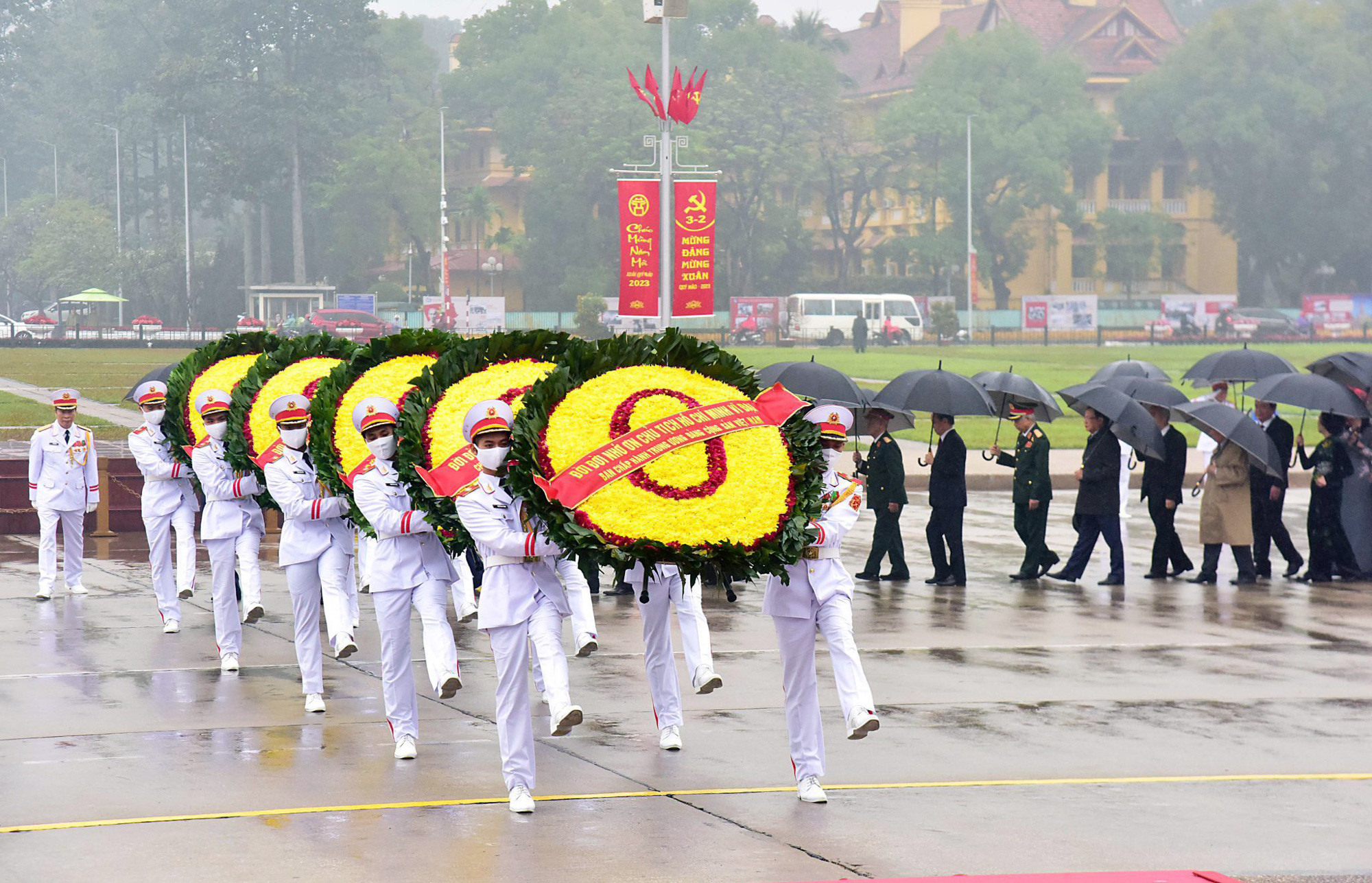 Sáng 3/2, kỷ niệm 93 năm ngày thành lập Đảng Cộng sản Việt Nam (3/2/1930-3/2-2023), đoàn đại biểu Ban Chấp hành Trung ương Đảng, Chủ tịch nước, Quốc hội, Chính phủ, Ủy ban Trung ương Mặt trận Tổ quốc Việt Nam đặt vòng hoa, vào Lăng viếng Chủ tịch Hồ Chí Minh và tưởng niệm các Anh hùng liệt sỹ tại Đài tưởng niệm các Anh hùng liệt sỹ.