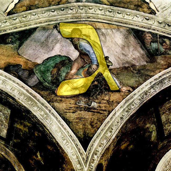 Hình dáng của David và Goliath trong một bức bích họa trong nhà nguyện Sistine của Michelangelo đã tạo nên chữ gimel trong tiếng Do Thái, biểu tượng cho sức mạnh theo truyền thống Kabbalah bí ẩn