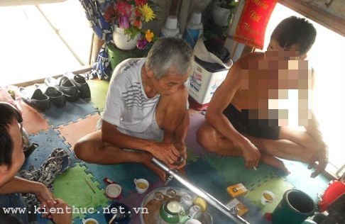 Hôm chúng tôi đến thăm cũng là lúc nhà ông Thành có khách. Vị khách hôm nay khá đặc biệt, chính là… bố vợ ông Thành. Đây là lần đầu tiên bố vợ đến thăm nhà con rể kể từ khi ông Thành và chị Thơm ở với nhau.