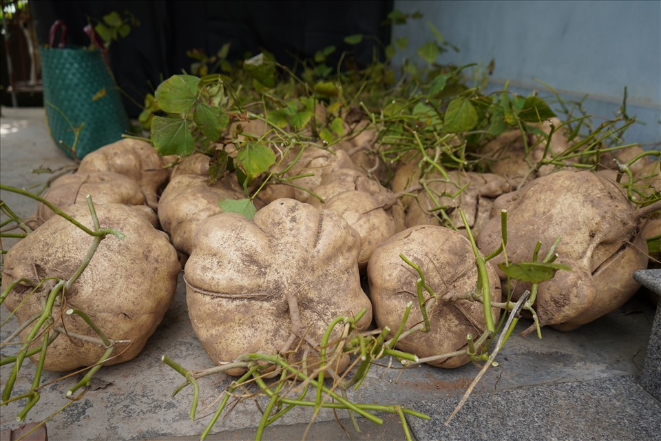 Theo ông Liêm, đến đầu tháng Chạp, 200 củ đậu trong vườn nhà đã có người đặt mua với giá từ 300.000 đồng đến hơn 1 triệu đồng tùy theo hình dáng, cân nặng của củ. Ảnh MD |