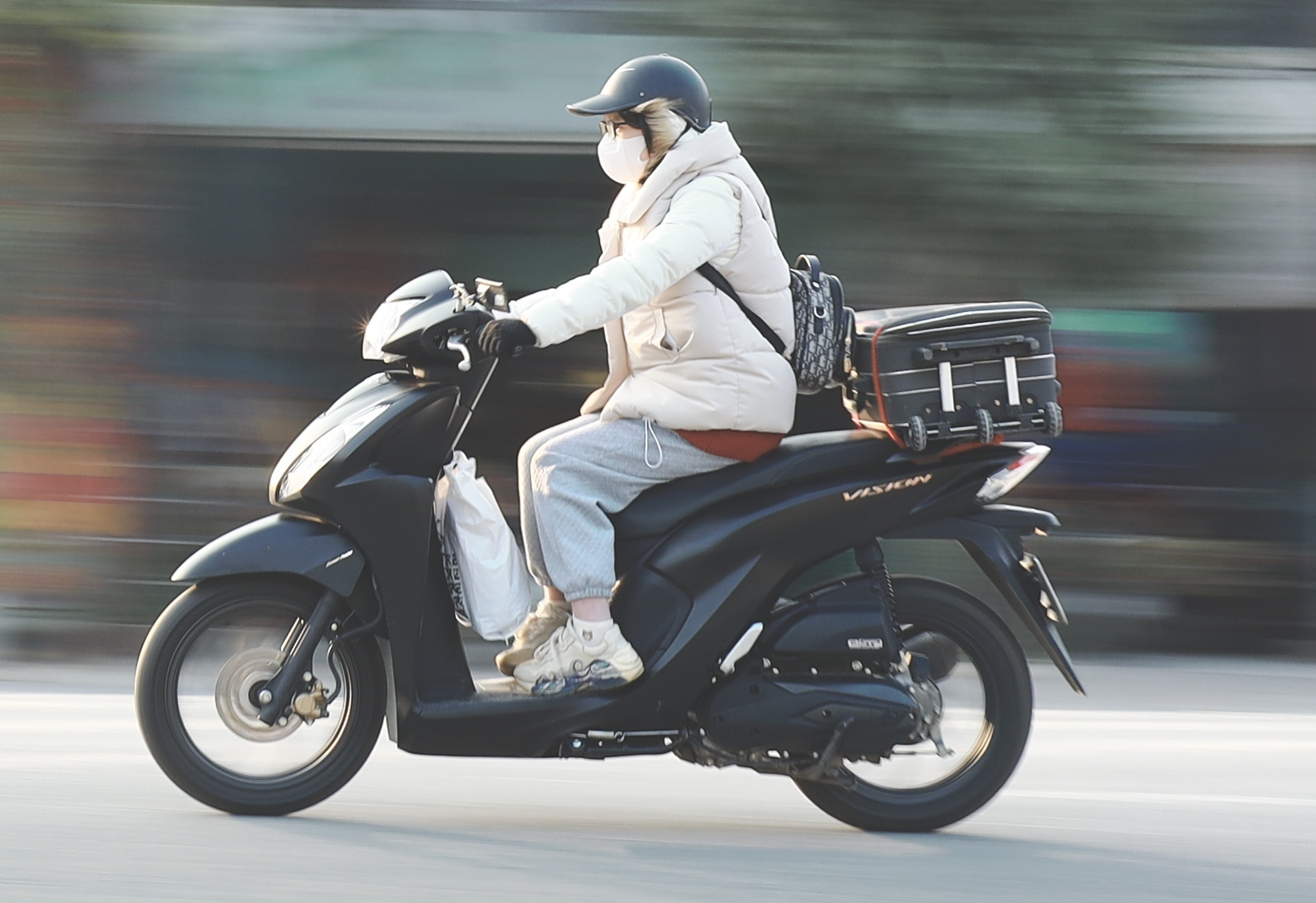 Suốt hành trình 230km từ Lạng Sơn về Hà Nội, Tô Việt Dũng hòa vào dòng người trở về nơi làm việc sau bao ngày nghỉ Tết. Chiếc xe máy của chàng trai trẻ nóng dần lên khi con đường thu ngắn lại.