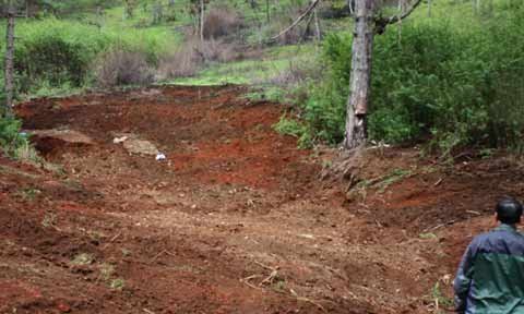 dùng máy múc san lấp trên diện tích khoảng 200m2 để các đơn vị trồng lại rừng.