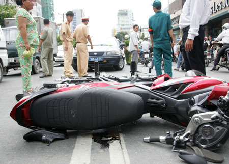 Lái xe Tăng Từ Thảo của văn phòng Hội Nhạc sĩ VN phía Nam với nụ cười trên môi tại hiện trường tai nạn