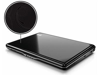 | Laptop HP Pavilion dv2606 (vòng tròn mô tả vân chìm trên vỏ máy). Ảnh: FHP. |