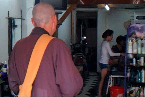 Một kẻ giả danh nhà sư khác thậm chí xông cả vào quán cắt tóc gội đầu, đi vào các khu chợ, quán hàng để xin tiền.