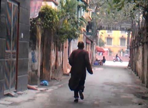 | Khi phát hiện có người quay phim, kẻ giả mạo nhà sư đi khất thực xin tiền tìm đường thoái lui. Ảnh: GDVN |