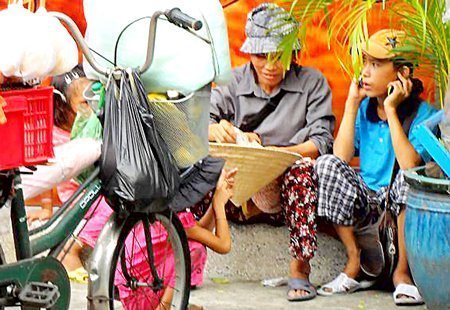 Cùng với vài người nữa, cuối ngày họ lại gặp nhau để chia tiền. Ảnh: SGGP |