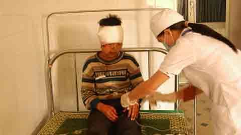 | Một nạn nhân của vụ tai nạn đang được các bác sĩ điều trị (Ảnh: Tuổi trẻ) |