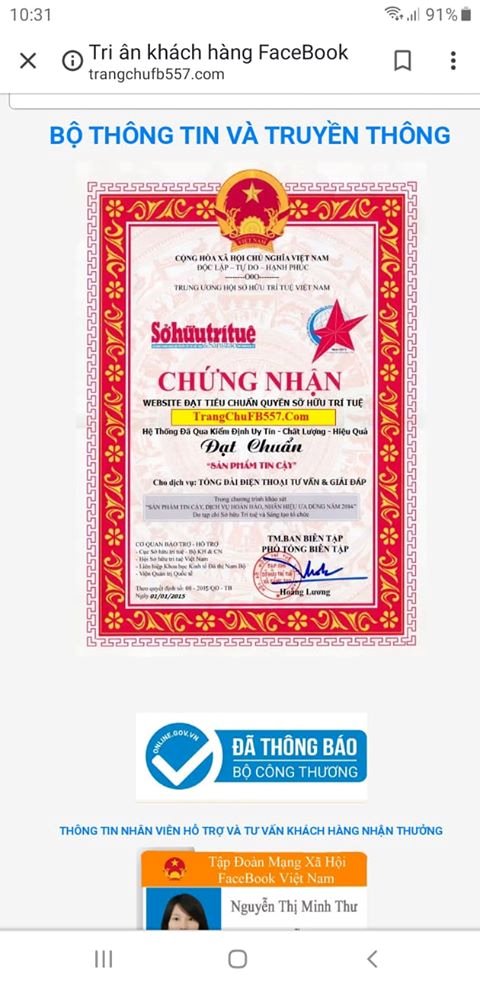 Theo ghi nhận của ICTnews gần đây nhiều người được tin nhắn lừa đảo trúng thưởng dẫn dụ vào trang web trangchufb557.com, trong đó cắt ghép giấy chứng nhận của Cục Sở hữu trí tuệ (Bộ Khoa học & Công nghệ) và Hội Sở hữu trí tuệ Việt Nam cho... trangchufb557.com, và lấy cả danh nghĩa của Bộ Thông tin & Truyền thông.