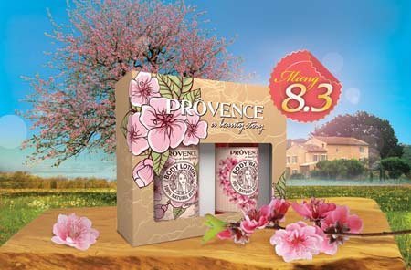 đào thuần khiết, bộ mỹ phẩm làm đẹp Prôvence bao gồm sữa tắm, dầu gội,