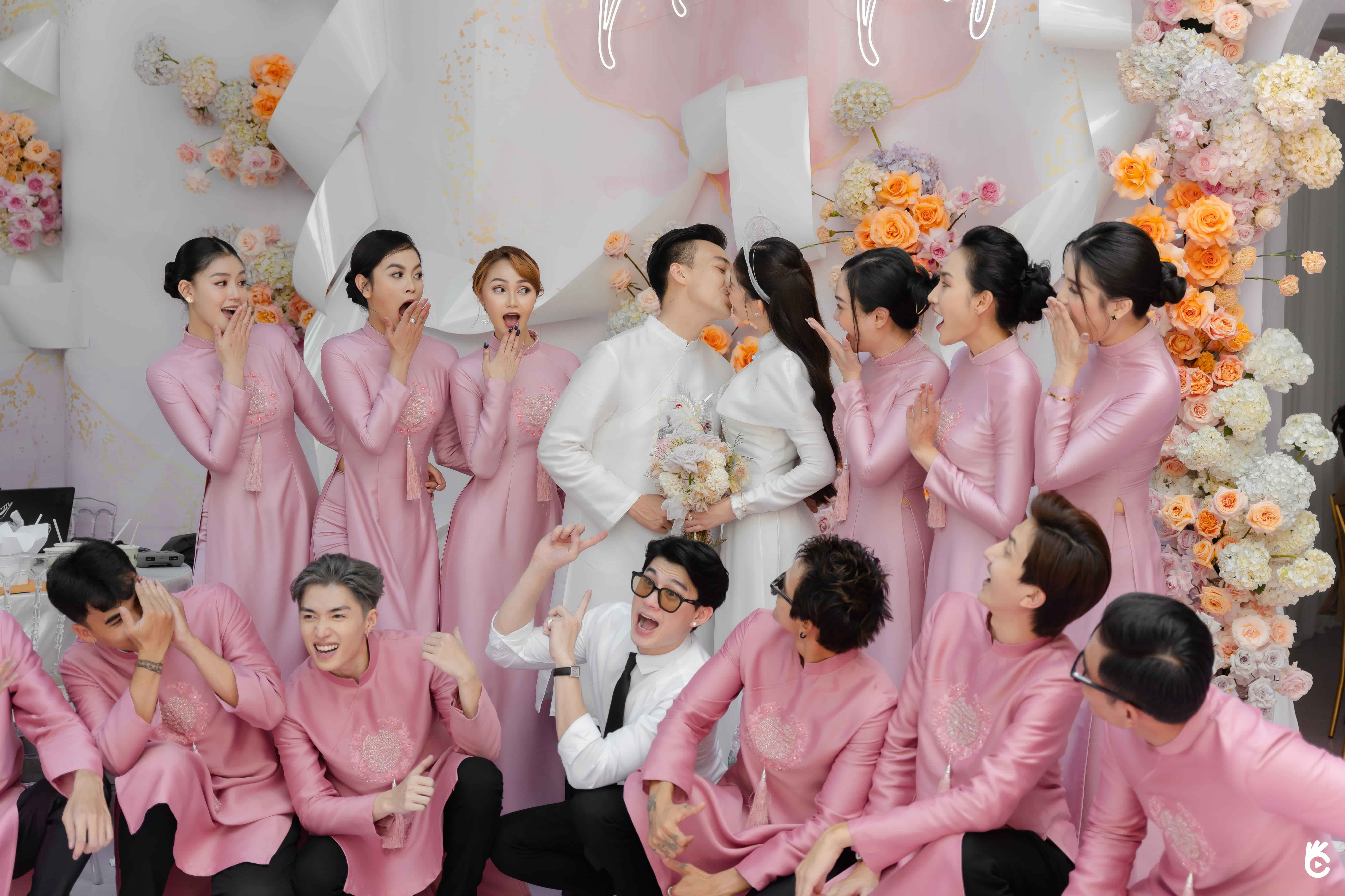 Sáng 1/11, gia đình chú rể Phan Tô Ny mang sinh lễ, di chuyển tới nhà cô dâu Lê Âu Ngân Anh làm đám hỏi. Chú rể Phan Tô Ny mặc áo dài cách tân màu trắng, rạng rỡ trong ngày trọng đại. Chồng hoa hậu Ngân Anh sở hữu ngoại hình bảnh bao, lịch lãm, khuôn mặt điển trai. Dàn phù rể tranh thủ chụp hình cùng chú rể Phan Tô Ny trước khi di chuyển sang nhà cô dâu. Trong trang phục áo dài cách tân, ai cũng háo hức, vui mừng, sẵn sàng chúc phúc cho cặp đôi. Hoa hậu Ngân Anh xinh đẹp nổi bật giữa phù dâu, cô mặc áo dài truyền thống thêu hoa tinh tế và được cách điệu phần khoác vai.Không gian tiệc vu quy của Ngân Anh và Phan Tô Ny phủ đầy hoa tươi, lựa chọn gam màu hồng - cam làm chủ đạo. Tất cả đều được chuẩn bị tỉ mỉ, chỉn chu với khoảng 2.000 bông hoa tươi gồm hồng mondial, hồng kem pastel, hồng cam shimmer, hồng xám westminter...Dàn phù dâu, phù rể của Ngân Anh - Tô Ny quy tụ dàn sao Việt như: diễn viên Hoàng Trung, Hữu Thanh Tùng, ca sĩ Cody, rapper Phạm Duy, á hậu Diệu Thùy, Thanh Ngân...Ngân Anh và Phan Tô Ny ôm hôn tình tứ trước sự chứng kiến của gia đình, bạn bè, đồng nghiệp. Cặp đôi đã đăng ký kết hôn gần nửa năm trước nhưng tháng 11/2022 mới chính thức tổ chức hôn lễ.Buổi lễ diễn ra trong không khí riêng tư với sự góp mặt của hai bên gia đình cùng dàn dâu phụ, rể phụ,... chung vui cùng cặp uyên ương.Hoa hậu Ngân Anh quen chồng sắp cưới trong một lớp học MC cách đây 2 năm. Khi đó, Tô Ny là thầy giáo còn Ngân Anh là học trò. Sau thời gian tìm hiểu, họ nảy sinh tình cảm và được gia đình hai bên ủng hộ.Lê Âu Ngân Anh sinh năm 1995 tại Tiền Giang, đăng quang Hoa hậu Đại dương năm 2017. Sau đó, người đẹp giành ngôi á hậu 4 cuộc thi Hoa hậu Liên lục địa. Cuối năm 2019, Ngân Anh vui mừng thông báo với người hâm mộ về việc tốt nghiệp thạc sĩ tại ĐH Salford danh giá ở TP. Manchester, Anh. Cô làm việc cho một công ty đầu tư và tư vấn tài chính trước khi trở thành giảng viên một trường đại học tại Việt Nam.Phan Tô Ny sinh năm 1990, là biên tập viên - MC của Đài truyền hình TP.HCM. Anh được khán giả yêu mến bởi vẻ điển trai phong thái nói chuyện lôi cuốn, trưởng thành. Ngoài ra, Phan Tô Ny còn sáng tạo nội dung, sản xuất nhiều chương trình truyền hình. Anh từng tham gia diễn xuất với vai Huy trong phim "Trở về 2".Lê Âu Ngân Anh lần đầu công khai hình ảnh chồng sắp cưới vào tháng 8. Cô tiết lộ sắp về chung một nhà với bạn trai sau hai năm hẹn hò. Trên trang cá nhân, hoa hậu Ngân Anh và chồng xác nhận với thời gian tổ chức đám cưới vào 18/11/2022.
