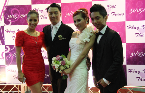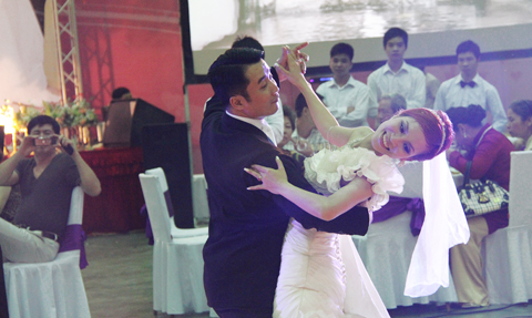 - Không chỉ hát mà cô dâu Thu Trang và chú rể Hồng Việt còn khiêu vũ nhiệt tình cùng những kiện tướng dancesport nổi tiếng khác như Khánh Thi, Minh Trường, Chí Anh, Nhã Khanh, Minh Đức, Vân Diễm... trong đám cưới tổ chức chiều 31/5 tại Cung Văn hóa Việt Xô, Hà Nội.