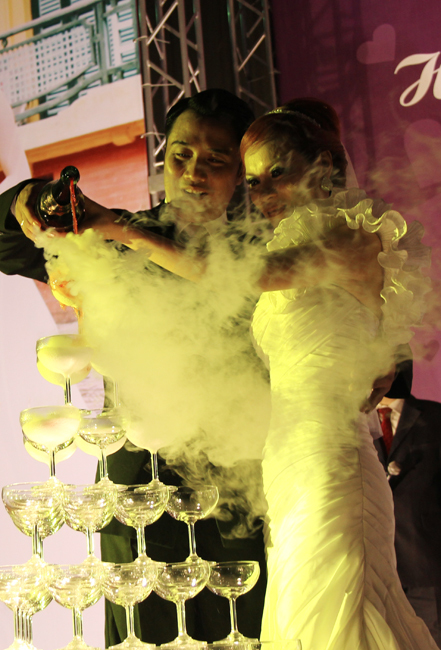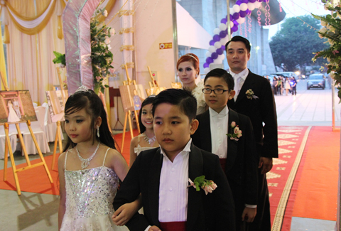 Cô dâu và chú rể tiến vào sân khấu chính để cử hành hôn lễ