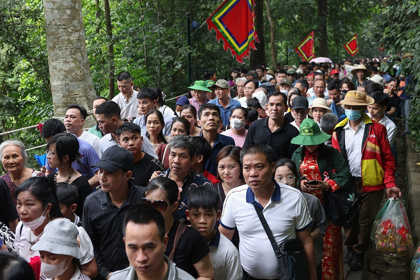 Ngay sau khi đoàn đại biểu dâng hương, đông đảo bà con nhân dân, du khách thập phương bắt đầu hành hương, mang theo lễ vật từ trục hành lễ lên Đền Thượng để thắp hương tri ân công đức Vua Hùng.