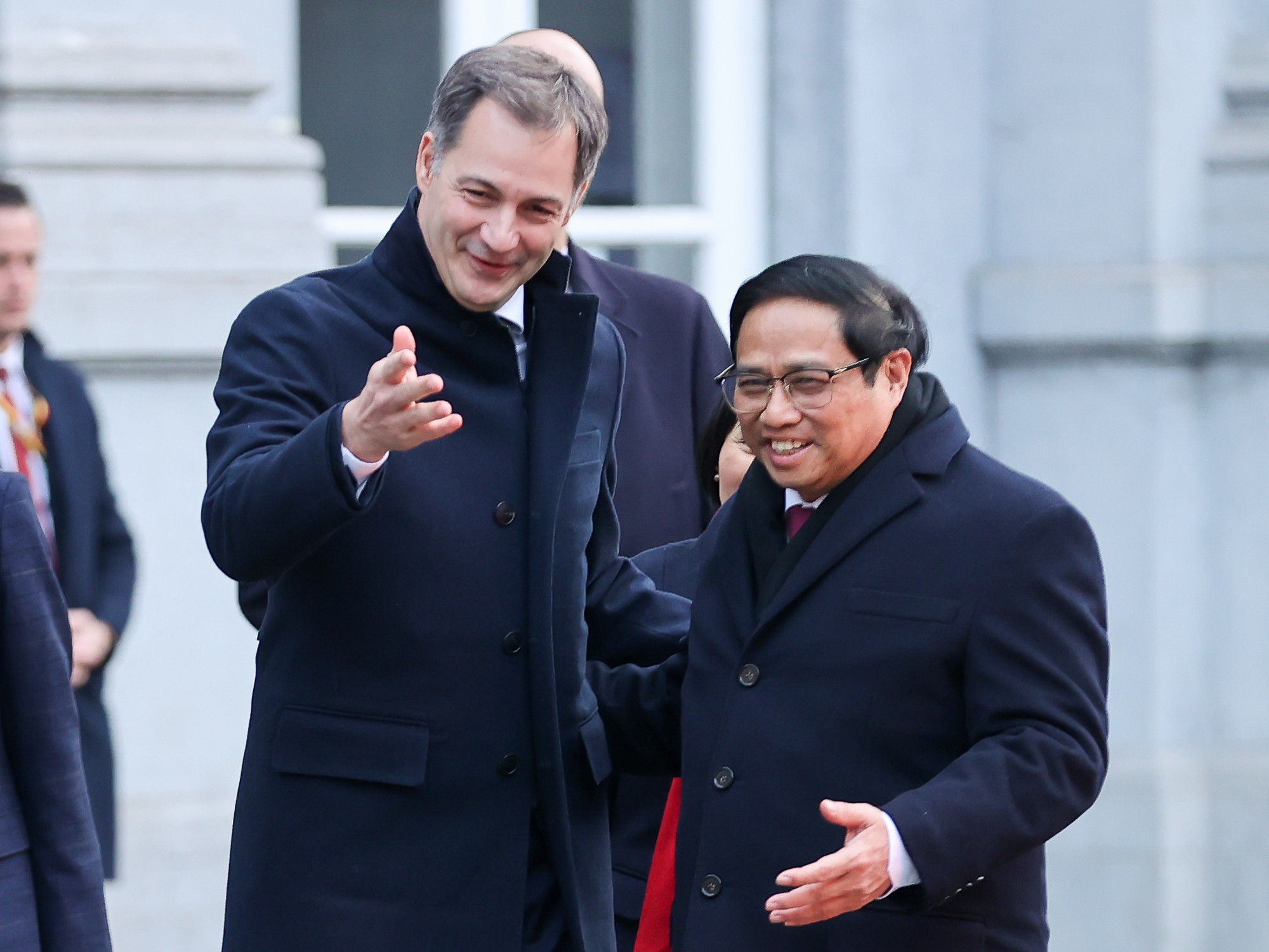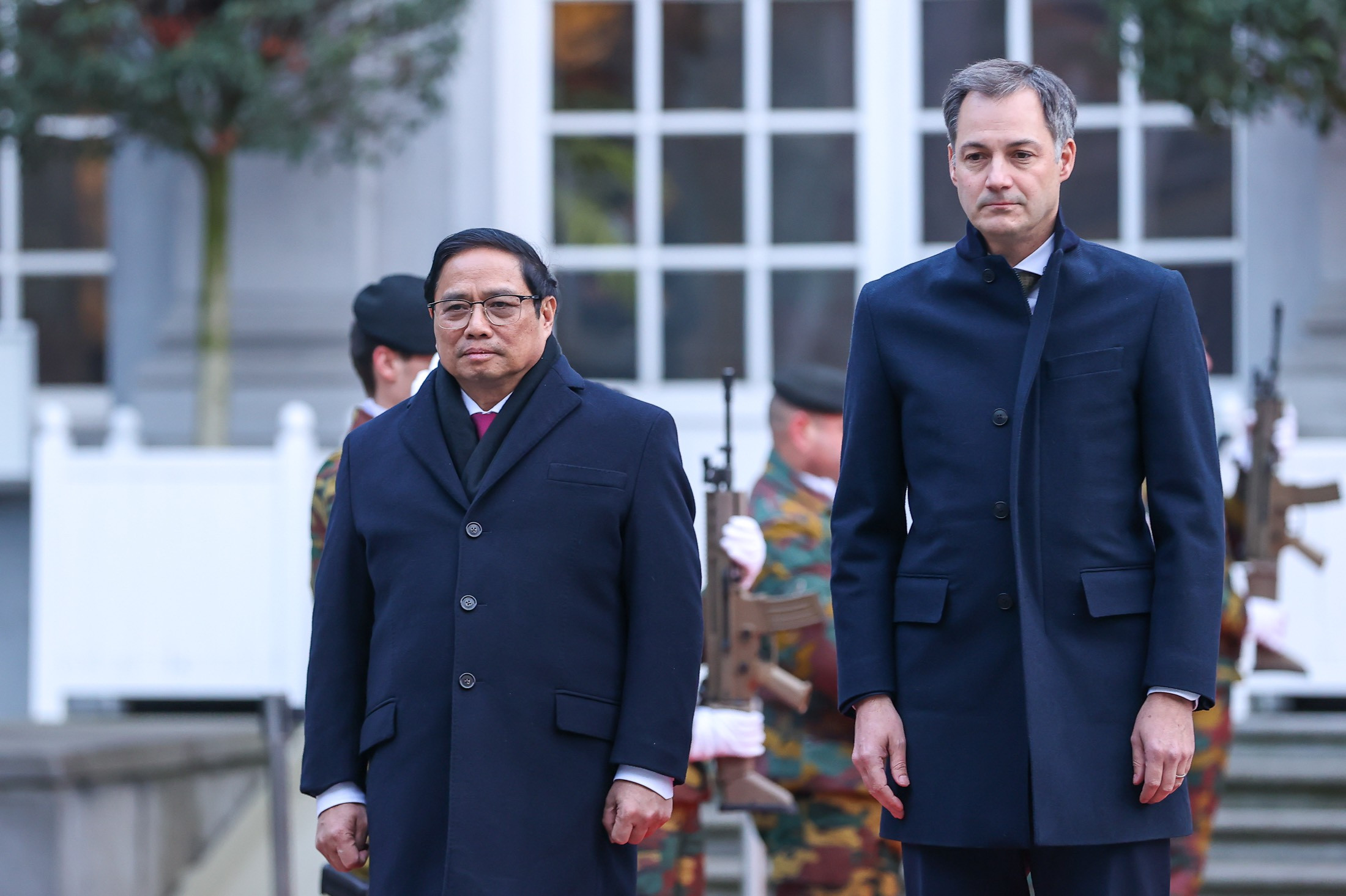 16h chiều 13/12 (giờ địa phương, 22h Việt Nam), tại Thủ đô Brussels, Thủ tướng Alexander De Croo chủ trì lễ đón Thủ tướng Phạm Minh Chính thăm chính thức Vương quốc Bỉ.