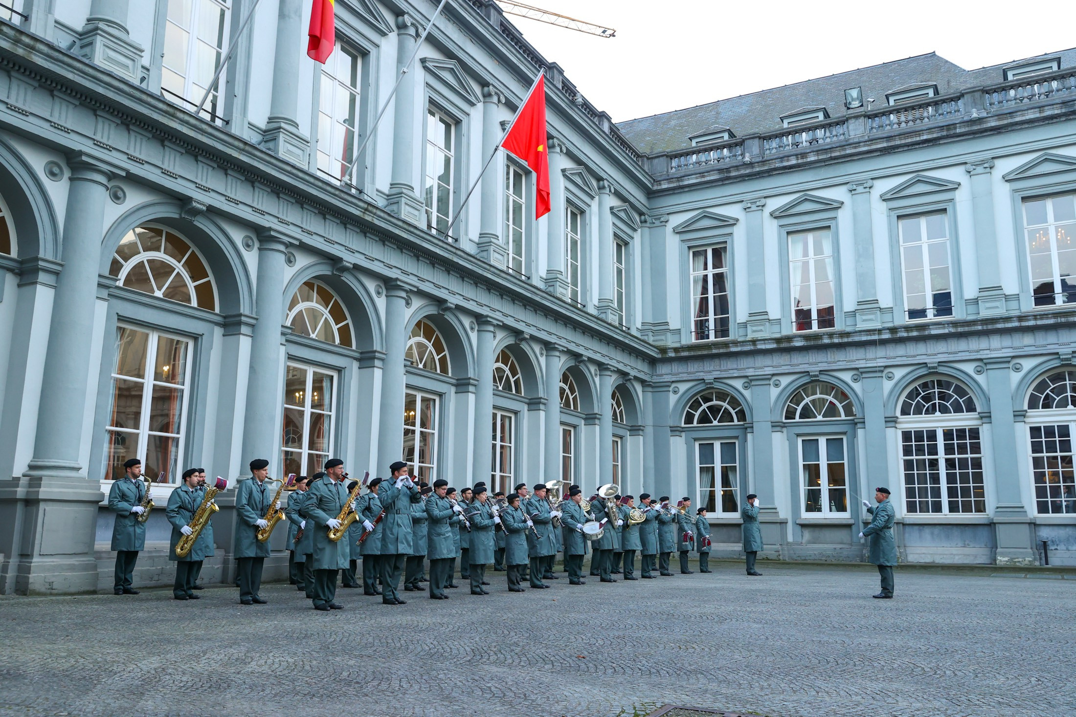 Trong không khí trang nghiêm, tại cung điện Egmont, Thủ tướng Alexander De Croo mời Thủ tướng Phạm Minh Chính bước vào vị trí danh dự. Quốc thiều Việt Nam và Quốc thiều Bỉ vang lên long trọng, hai Thủ tướng tiến hành nghi lễ đón chính thức.