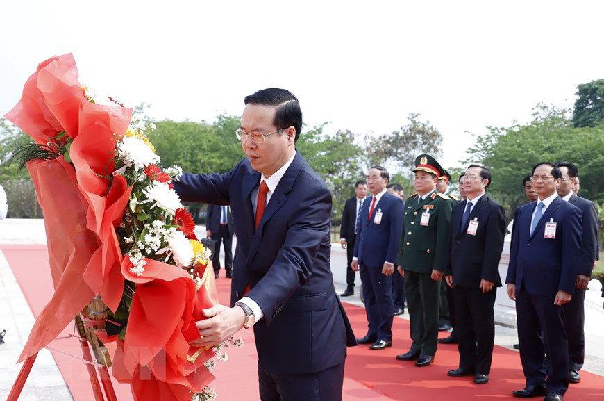 Đông đảo người dân thủ đô Vientiane trong những bộ trang phục truyền thống của nhân dân các bộ tộc Lào với cờ hai nước và những bông hoa rực rỡ trên tay, nồng nhiệt chào mừng Chủ tịch nước Võ Văn Thưởng và đoàn đại biểu Việt Nam.Tổng Bí thư, Chủ tịch nước Lào Thongloun Sisoulith đón Chủ tịch nước Võ Văn Thưởng. Sau khi các em thiếu nhi thủ đô Vientiane tặng hoa Chủ tịch nước Võ Văn Thưởng, hai nhà lãnh đạo cùng di chuyển đến vị trí danh dự chuẩn bị lễ đón.Quân nhạc cử Quốc thiều Việt Nam và Lào. Đội trưởng đội danh dự Lào mời Chủ tịch nước Võ Văn Thưởng duyệt đội danh dự. Chủ tịch nước Võ Văn Thưởng và Tổng Bí thư, Chủ tịch nước Lào Thongloun Sisoulith cùng duyệt đội danh dự.Tổng Bí thư, Chủ tịch nước Lào Thongloun Sisoulith và Chủ tịch nước Võ Văn Thưởng sau đó cùng bước tới thân mật chào hỏi các quan chức hai nước có mặt tại lễ đón.Chủ tịch nước Võ Văn Thưởng và Tổng Bí thư, Chủ tịch nước Lào Thongloun Sisoulith.Ngay sau lễ đón, Chủ tịch nước Võ Văn Thưởng cùng Tổng Bí thư, Chủ tịch nước Lào Thongloun Sisoulith dẫn đầu đoàn đại biểu cấp cao hai nước tiến hành hội đàm.Trước đó, Chủ tịch nước Võ Văn Thưởng đã đến đặt vòng hoa tại Đài tưởng niệm các chiến sĩ vô danh.