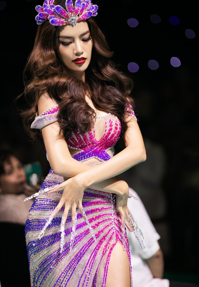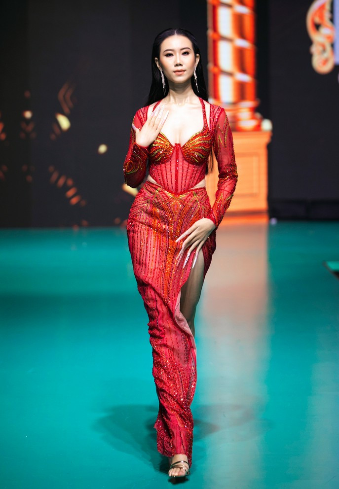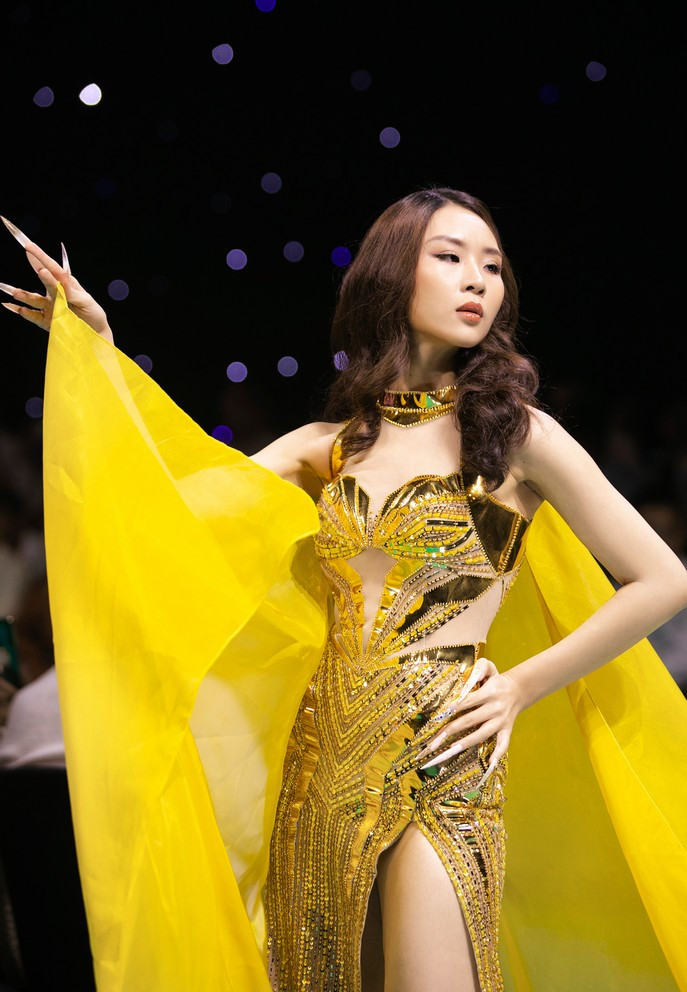 Top 5 Hoa hậu Hoàn vũ 2022 Lê Hoàng Phương và Á hậu 2 Thủy Tiên lần lượt giữ vị trí mở màn và vedette cho show diễn của nhà thiết kế Nguyễn Minh Tuấn.