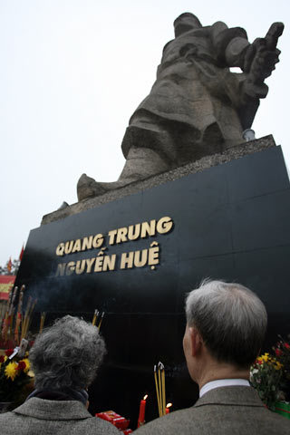 Nhiều người dân năm nào cũng đúng mồng 5 Tết đến tượng đài vua Quang Trung thắp hương tưởng nhớ vị anh hùng dân tộc.