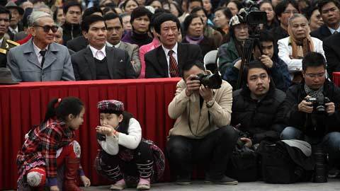 Hàng nghìn người dân, quan khách cùng các phóng viên báo đài tác nghiệp lễ hội.