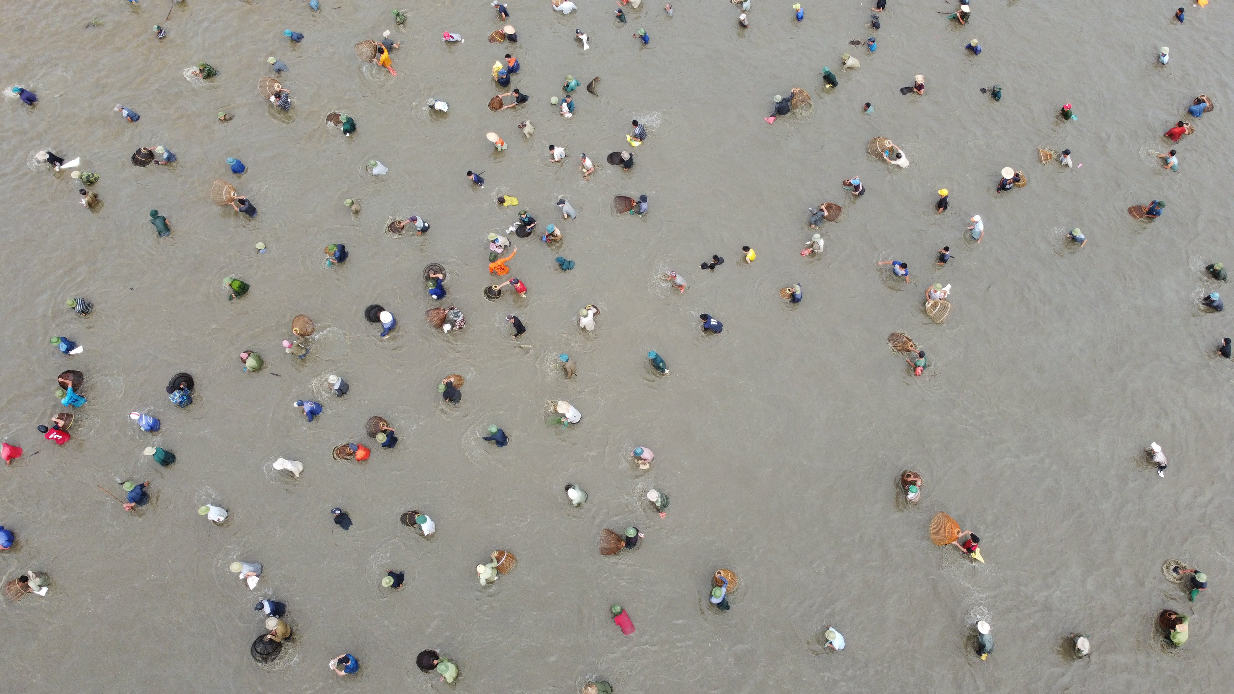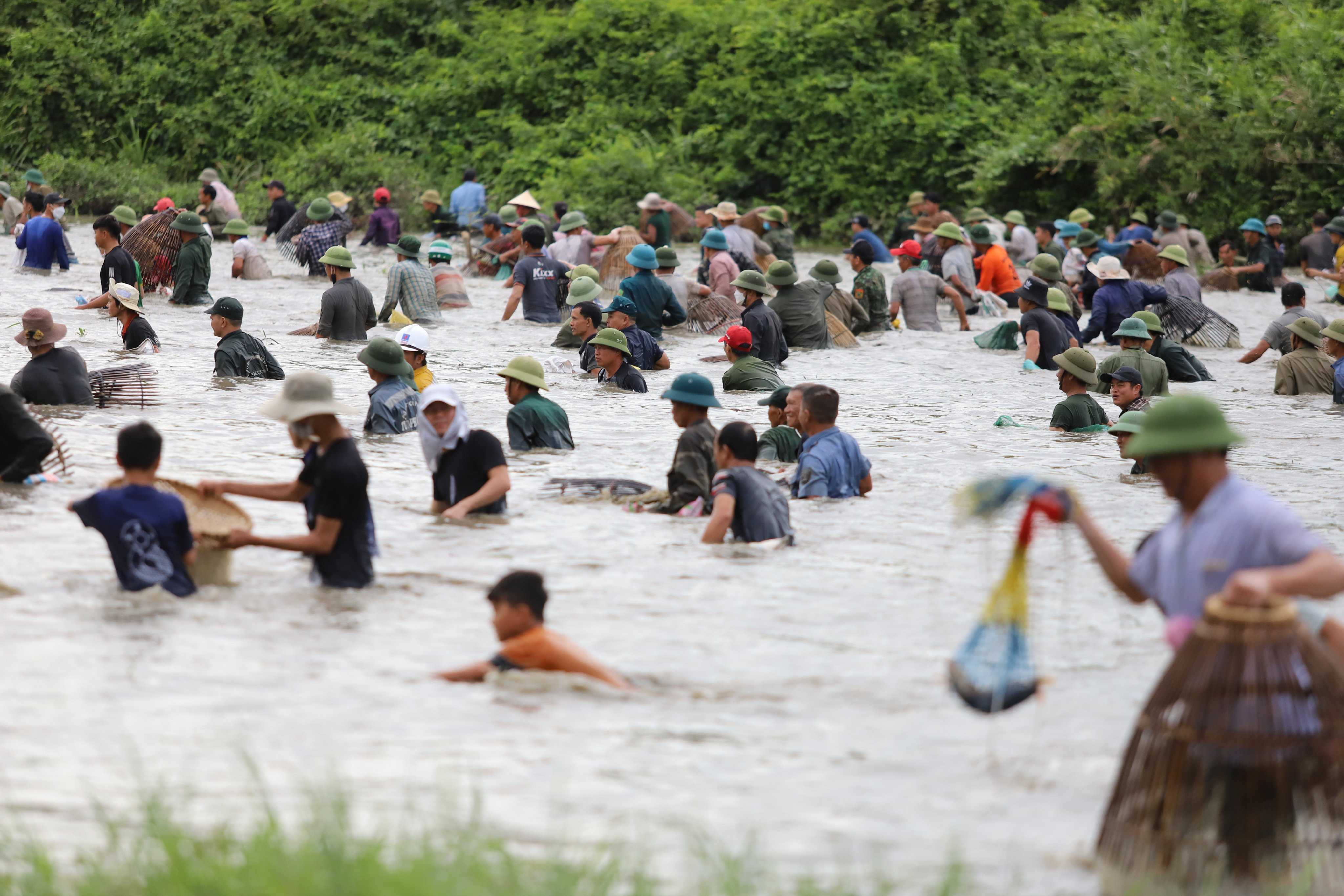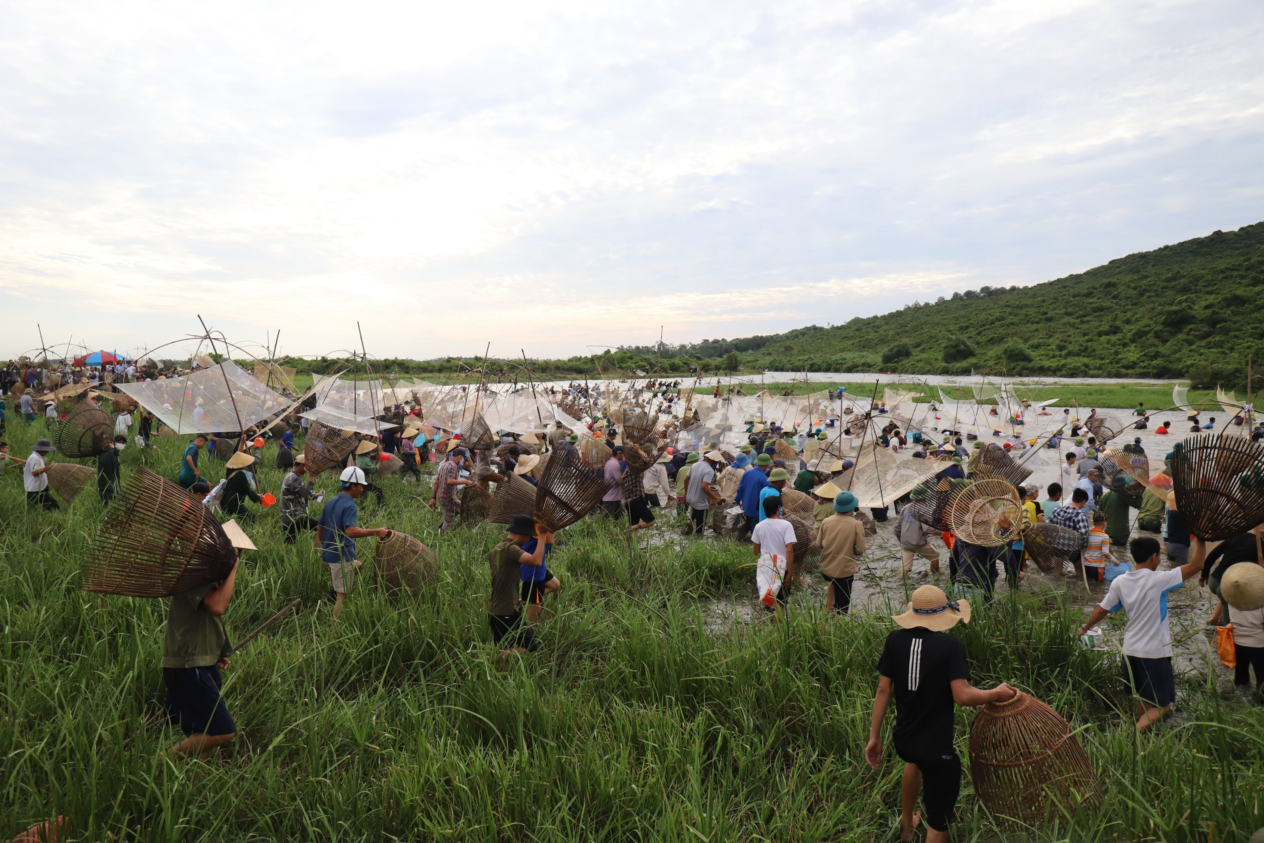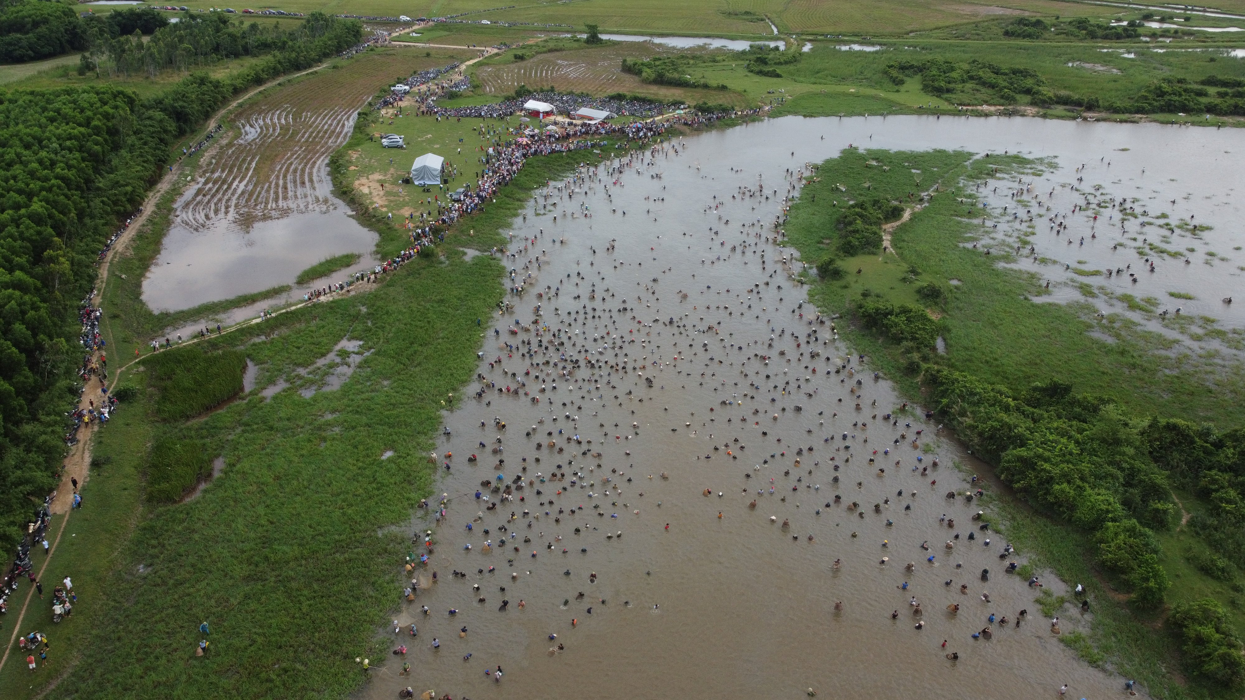 Ngay từ sáng sớm, hàng nghìn người dân từ khắp nơi đổ về. Sau tiếng trống khai hội, hàng nghìn người lao xuống đầm bắt cá, trên bờ người dân hò reo, cổ vũ.