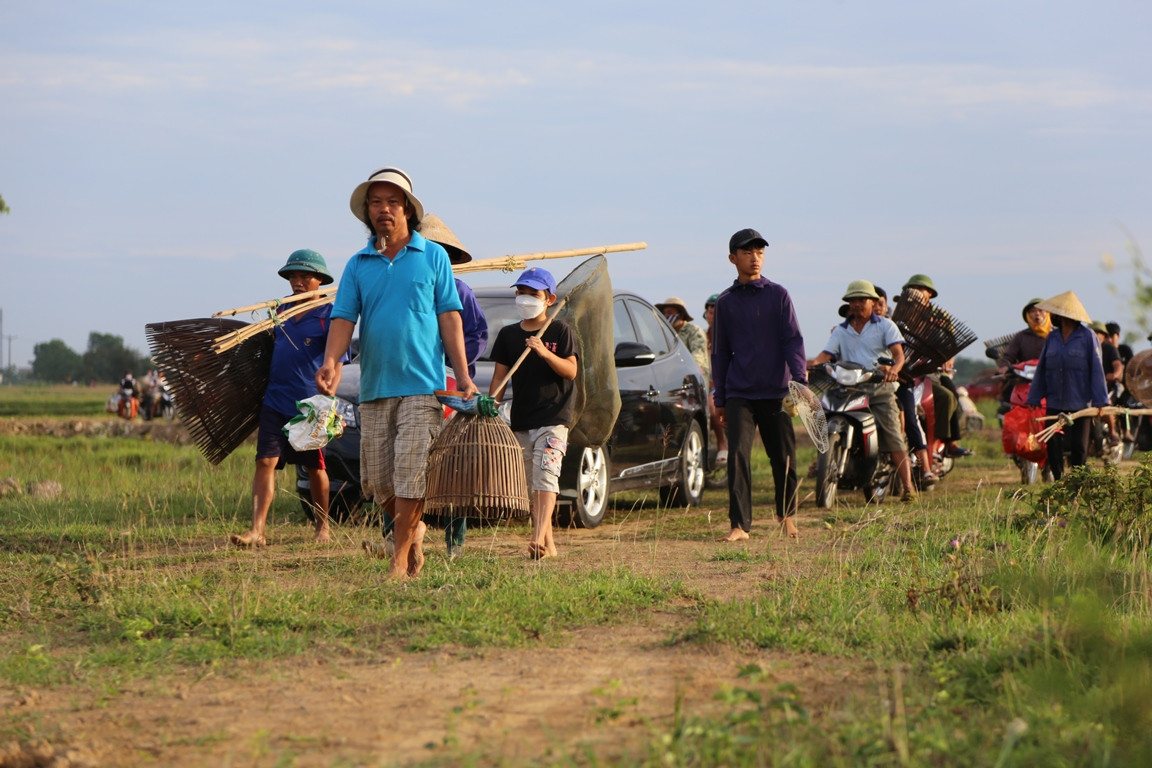 Sáng 12/6, UBND xã Xuân Viên (huyện Nghi Xuân, Hà Tĩnh) tổ chức lễ hội truyền thống Đồng Hoa. Hàng nghìn người dân mang theo dụng cụ như nơm, vó, lưới... lao xuống đầm đánh bắt cá.