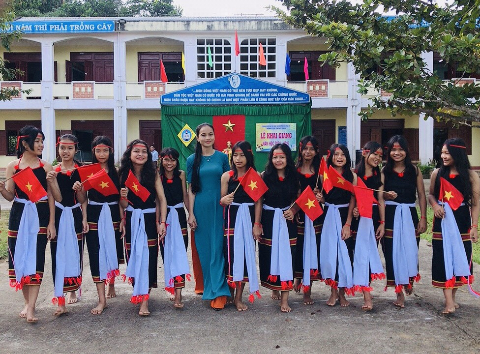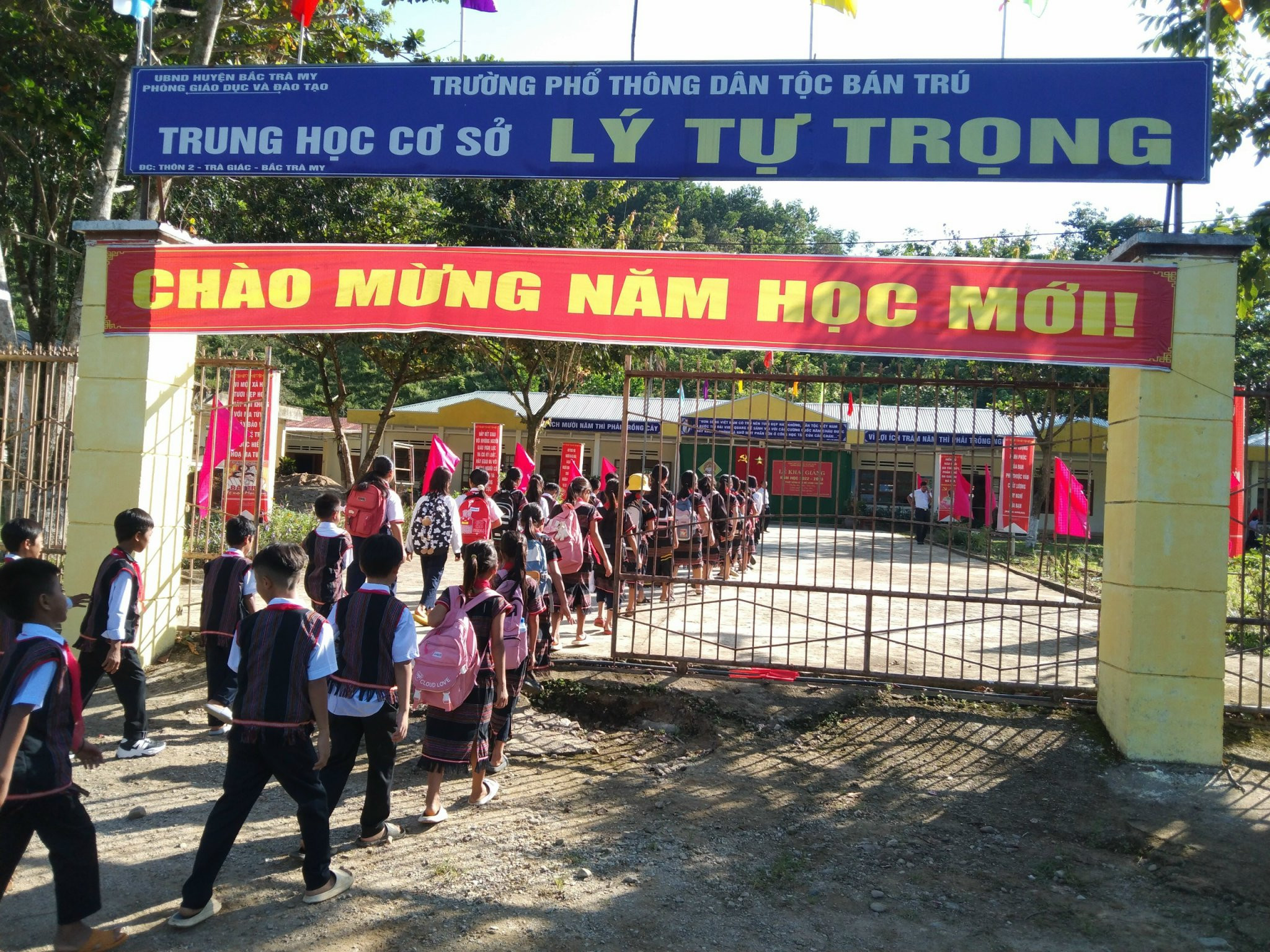 Còn tại huyện Bắc Trà My (tỉnh Quảng Nam), học sinh các Trường Phổ thông dân tộc bán trú THCS Chu Huy Mân, Trường phổ thông dân tộc bán trú THCS Lý Tự Trọng… đã mang bộ trang phục truyền thống của dân tộc trong ngày khai giảng.