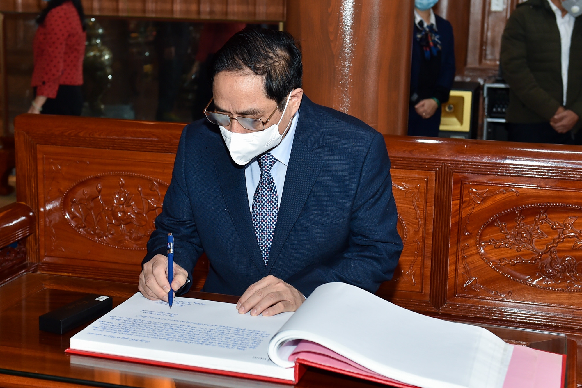 Thủ tướng ghi lưu bút tại Đền thờ Chủ tịch Hồ Chí Minh và các anh hùng, liệt sĩ tỉnh Quảng Bình. Ảnh: VGP/Nhật Bắc |