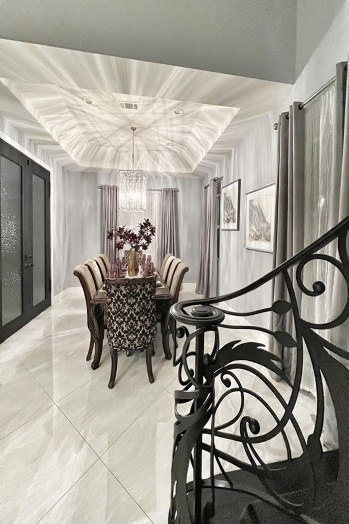 Trên trang cá nhân, ca sĩ Lệ Quyên chia sẻ những hình ảnh ngôi nhà của mình. Đây là lần hiếm hoi nữ ca sĩ chia sẻ hình ảnh về cơ ngơi hoành tráng ở Mỹ trên mạng xã hội.Căn nhà trị giá 1,5 triệu USD (hơn 34 tỷ đồng) được thiết kế của kính sang trọng, tông màu dịu nhẹ tạo cảm giác thoải mái. Ca sĩ mua nhà không phải để định cư mà là để nghỉ chân, sinh hoạt mỗi khi đi lưu diễn. Giọng ca "Tình lỡ" chọn màu trắng xám và nâu gỗ làm tông màu chủ đạo. Trước đó, không ít lần giọng ca bolero chia sẻ về cơ ngơi hoành tráng trên trang cá nhân.Đồ đạc được cô chọn phù hợp với tông màu của nhà. Dù không sinh sống thường xuyên, nội thất trong nhà đều được dọn dẹp, trang hoàng sạch sẽ và tươm tất.Căn nhà được thiết kế với không gian mở, nối liền phòng khách, bếp và bàn ăn tạo nên sự liền mạch giữa các khu vực và tạo nên sự rộng rãi và khoáng đạt. Khu vực bàn ăn được cô bày trí hoa tươi, bàn ghế sang trọng và đèn pha lê tạo nên không gian lãng mạn và ấm cúng. Đồ đạc trong nhà do chính Lệ Quyên mua để bài trí. Nội thất trong nhà đều những thương hiệu xa xỉ và đắt tiền nên rất sang trọng. Ngoài ra, giọng ca trữ tình còn được biết đến là một trong những ca sĩ có khối tài sản “khủng”, ngoài sỡ hữu những căn biệt thự rộng lớn cô còn có niềm đam mê với đồ hiệu, kim cương.Cầu thang nối lên lầu được thiết kế hoa văn tinh xảo mang phong cách quý tộc.Đèn chùm tạo cảm giác ấm cúng cho căn nhà.Ngoài ra, không gian ngoài sân vườn có hồ nước được nữ ca sĩ thờ Phật. Từ mọi ngóc nghách trong và ngoài nhà cũng được Lệ Quyên chăm chút tỉ mỉ.
