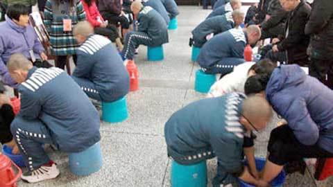 của mình, các tù nhân đã rửa chân cho người thân trong gia đình.