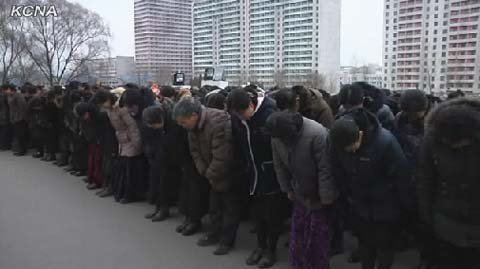 Người dân Triều Tiên cúi đầu trước ảnh chân dung ông Kim Jong-il.