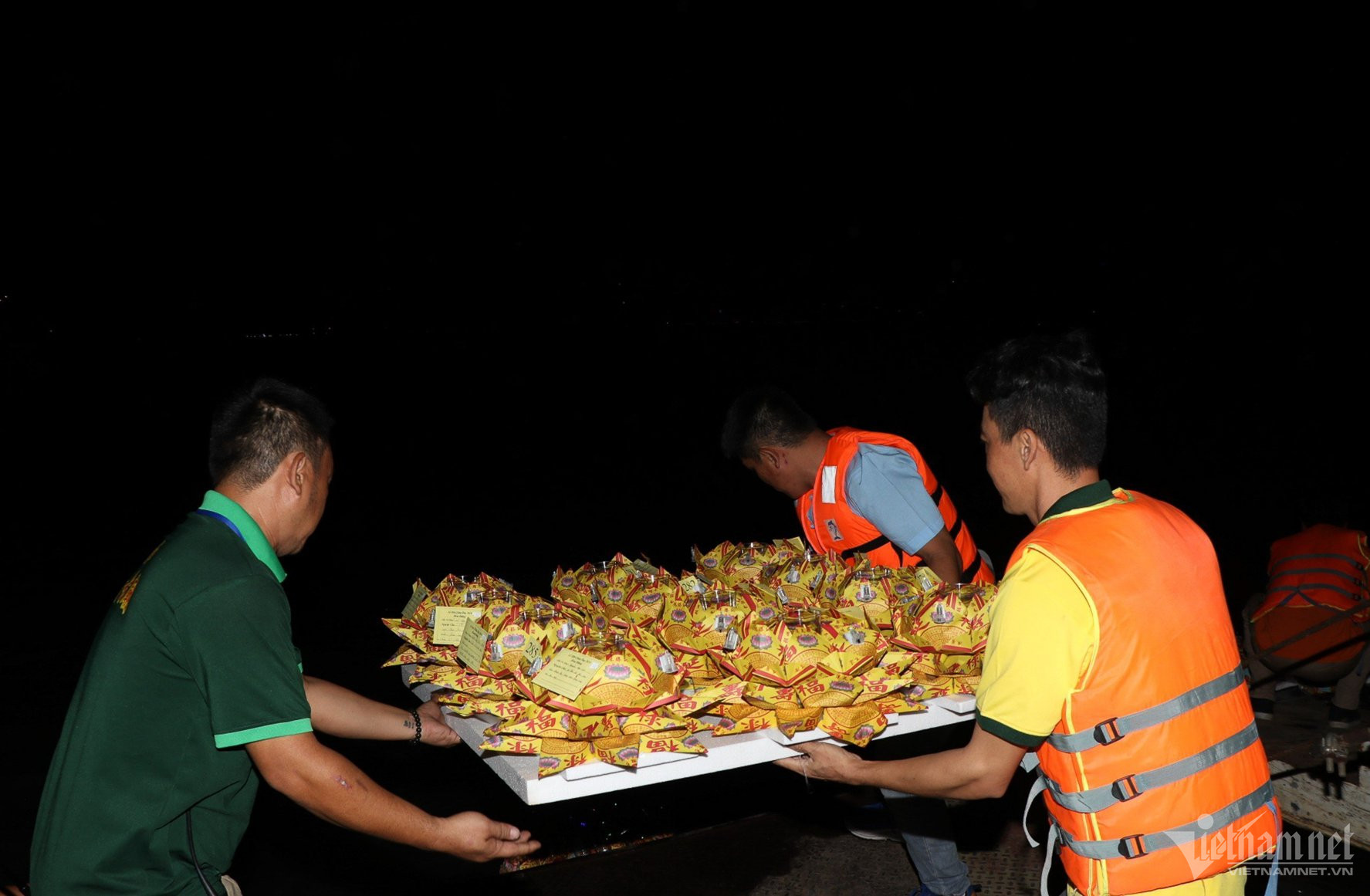 Dòng người xếp hàng dài để chờ đến lượt thả hoa đăng.