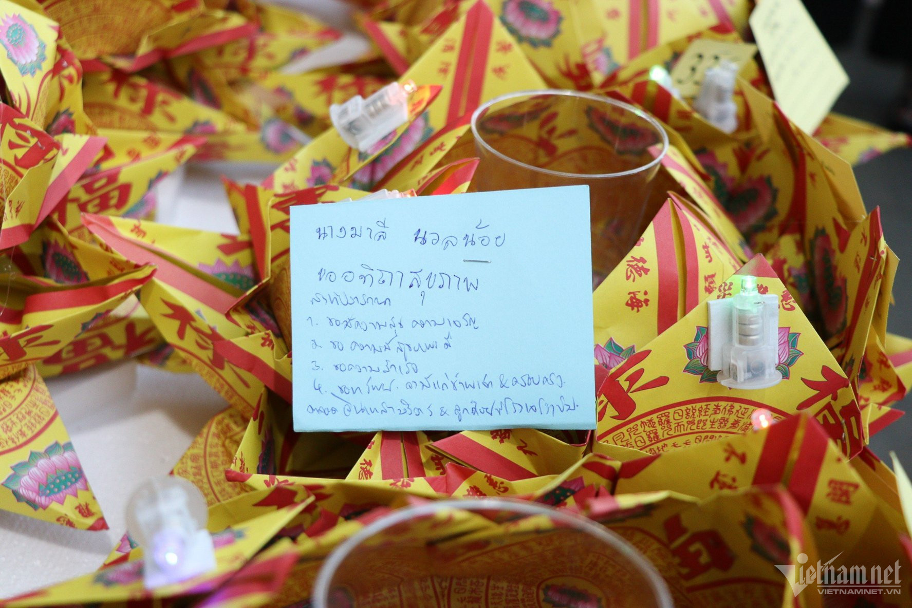 Du khách quốc tế được tự tay viết những lời nguyện cầu cho một năm mới bình an, hạnh phúc và thịnh vượng, đính kèm lên những chiếc hoa đăng thả ở sông Đồng Nai trong lễ hội chùa Ông