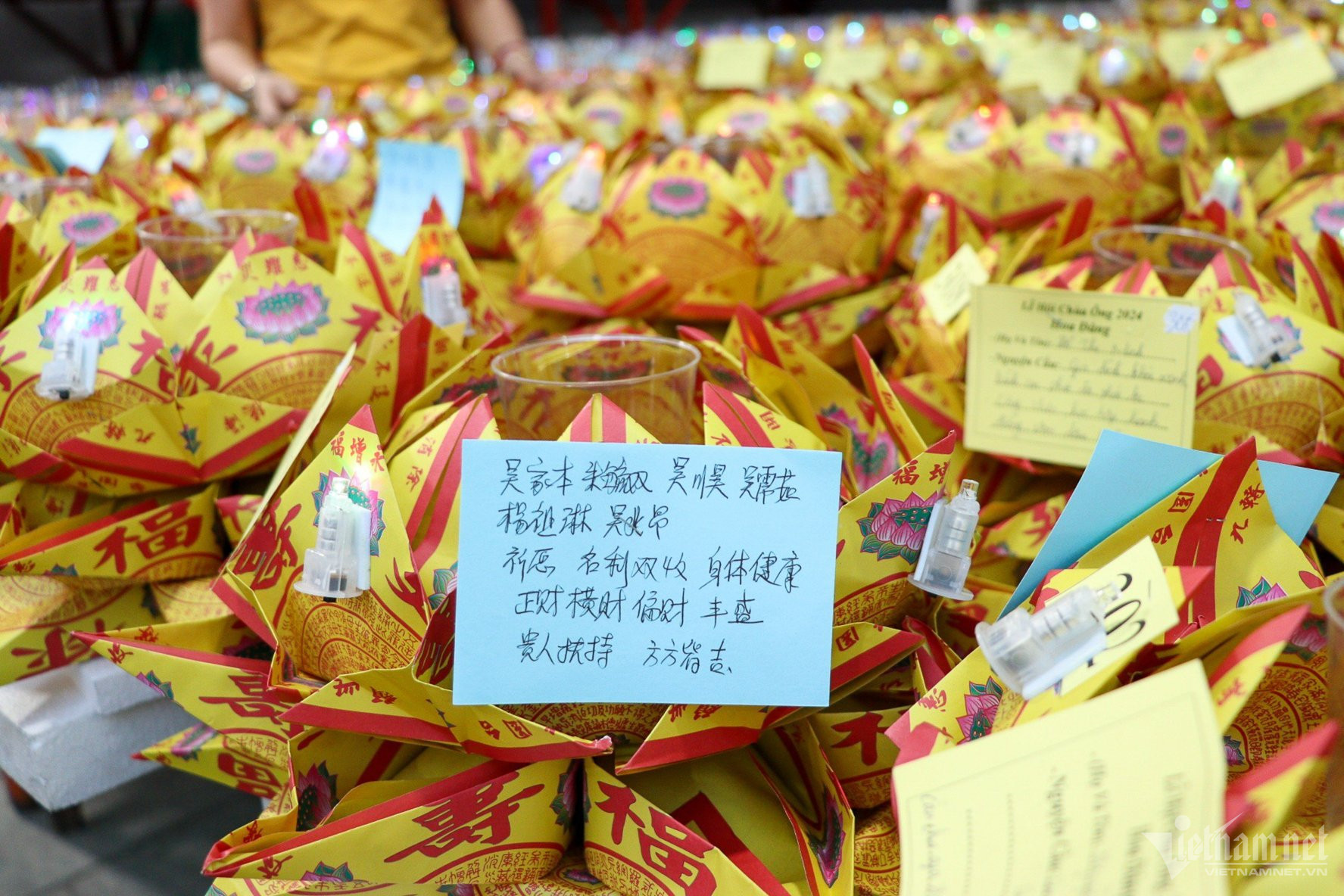 Hàng nghìn hoa đăng tại sân chùa Ông chuẩn bị thả xuống sông Đồng Nai