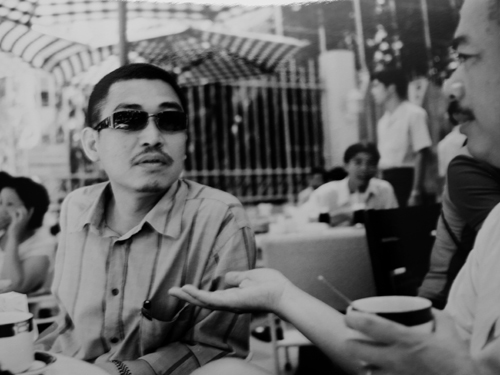 2. Năm 2006, tôi gặp Cương ở Ciao Cafe, Saigon. Đó là một buổi chiều trời âm u bão rớt. Cương ngợi khen đĩa Những chuyện kể của tôi rất nhiều, một đĩa nhạc đắng chát khó nghe; Cương tặng tôi mấy vựng tập in tranh của anh, những tranh kiệm hình kiệm màu vẽ hạt gạo, tối giản chủ nghĩa và cũng đắng ở đường cọ dị hình xước xát, như nhạc đắng của tôi thuở đó. Chúng tôi mau chóng thân nhau và mỗi lần Cương vào Saigon, đều ngồi với tôi khi thì ở Ciao (có cả nhà văn Nguyễn Việt Hà) lúc đem theo con trai ra Crêperie et Café đường Hàn Thuyên và tôi chụp hai bố con vài bức ảnh. Chuyện vãn về văn chương và nhiếp ảnh nhiều hơn nhạc, họa.