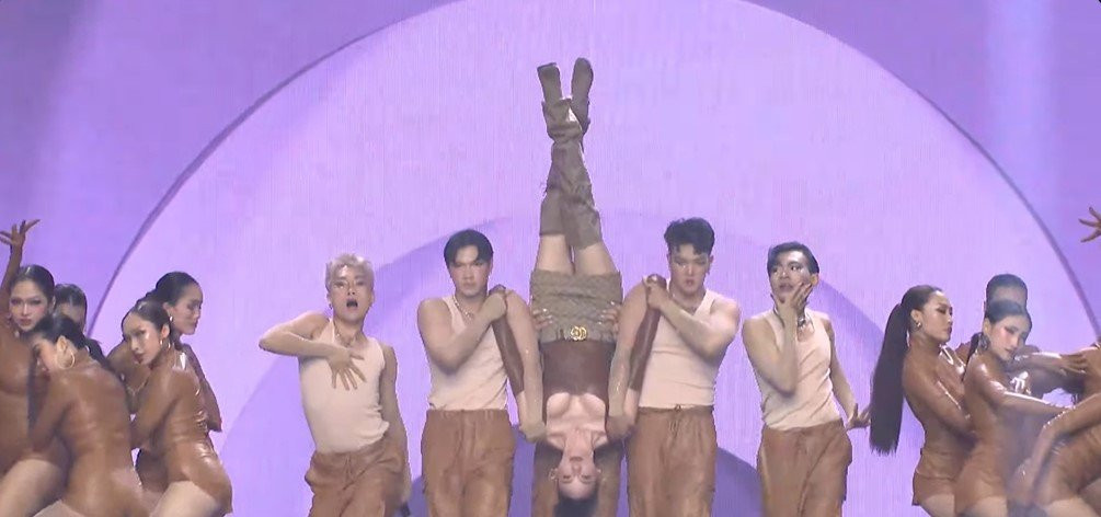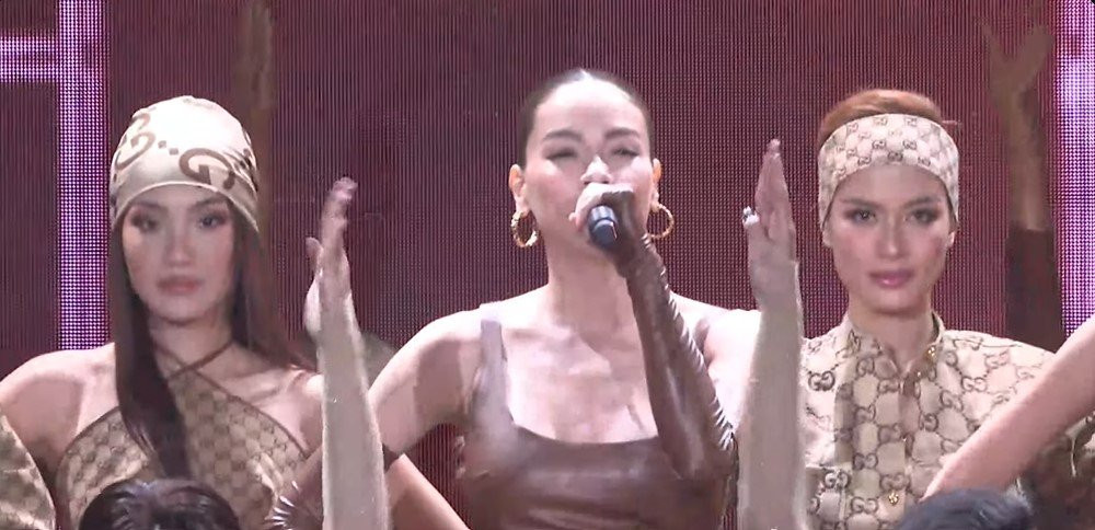 Cô cũng cho các học trò diện các thiết kế của một thương hiệu thời trang xa xỉ này. Phần rap ấn tượng của Kim Lý cũng đánh dấu lần đầu tiên Hồ Ngọc Hà cùng chồng xuất hiện trên sân khấu.