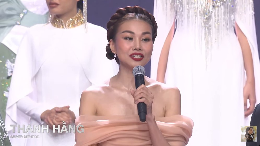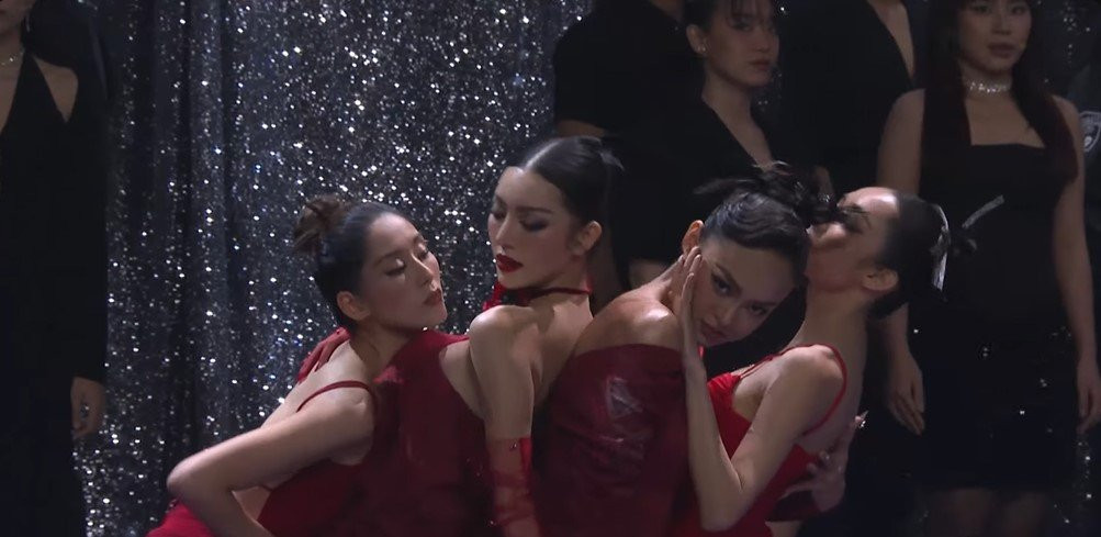 Các người mẫu của đội Thanh Hằng gồm Mai Ngô, Kim Phương, Hồng Hạnh, Ngọc Ánh, Bùi Lý Thiên Hương, Tường Vân bước vào phần đồng diễn, đồng loạt diện đầm dạ hội đỏ, catwalk trên nền nhạc violin và dàn đồng ca. Super Mentor Thanh Hằng xuất hiện ấn tượng trong thiết kế đầm liền quần chất liệu metallic cùng chi tiết tua rua lấp lánh, sải bước kết hợp vũ đạo cùng dàn thí sinh.