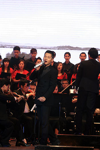 Ca sĩ Đức Tuấn thể hiện ca khúc Trở về cùng dàn nhạc thính phòng.