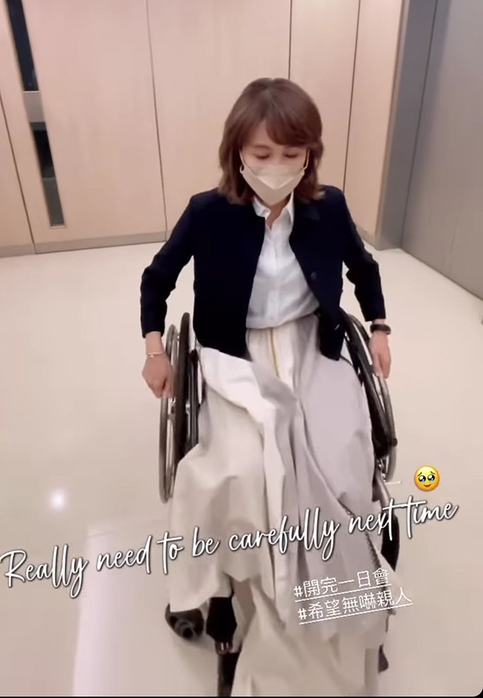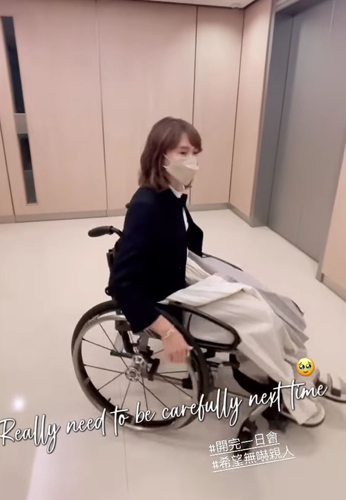 Trên Weibo, Lê Tư đăng tải tấm ảnh ngồi trên xe lăn. "Lần tới phải hết sức cẩn thận, hy vọng không làm mọi người hoảng sợ", cô cho hay.